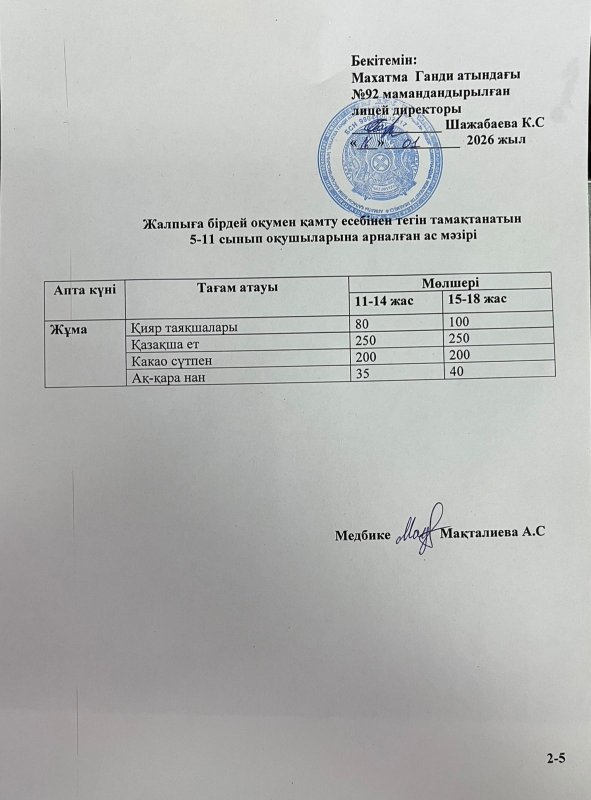 КГУ «Специализированный лицей №92 имени Махатма Ганди» Управления образования города Алматы