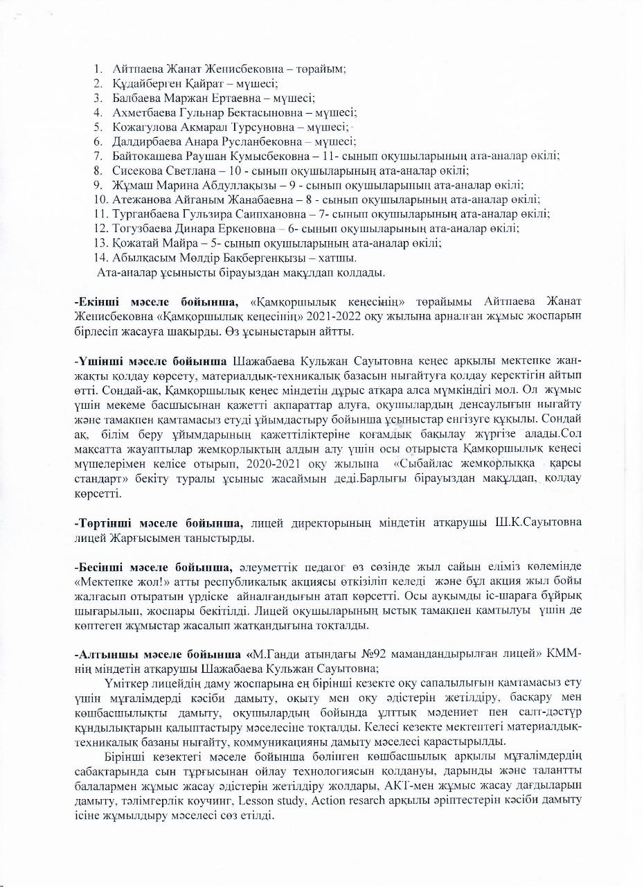КГУ «Специализированный лицей №92 имени Махатма Ганди» Управления образования города Алматы