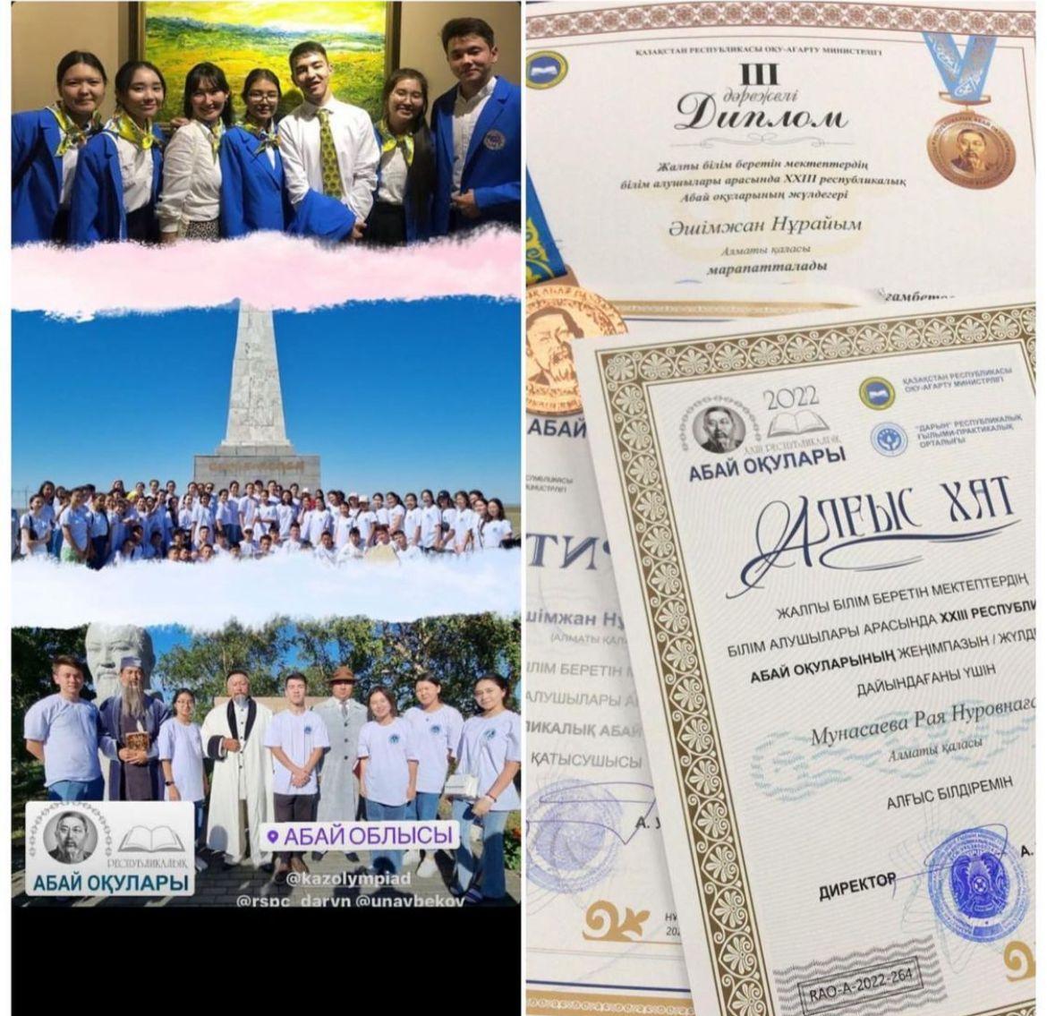 Жалпы білім беретін мектептердің білім алушылары арасында “ХХІІІ республикалық Абай оқуларынан”  лицейіміздің 10 “А” сынып оқушысы Әшімжан Нұрайым ІІІ орын жүлдегері атанды.