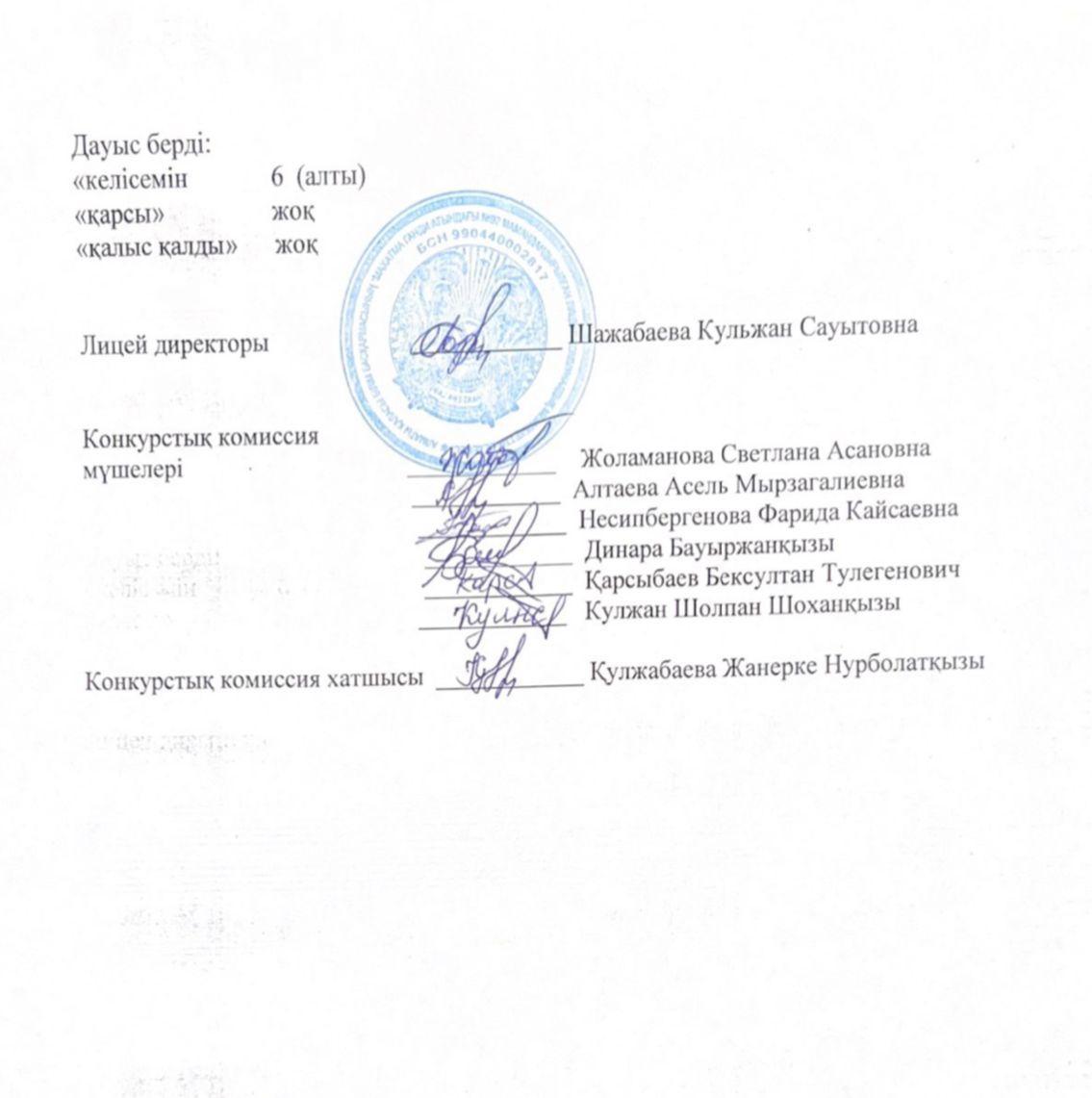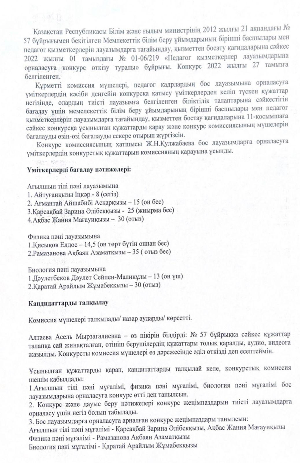 27 август 2022 0 1 2 3 4 5 «М.Ганди атындағы № 92 мамандандырылған лицей» КММ Конкурстық комиссиясының №2 хаттамасы