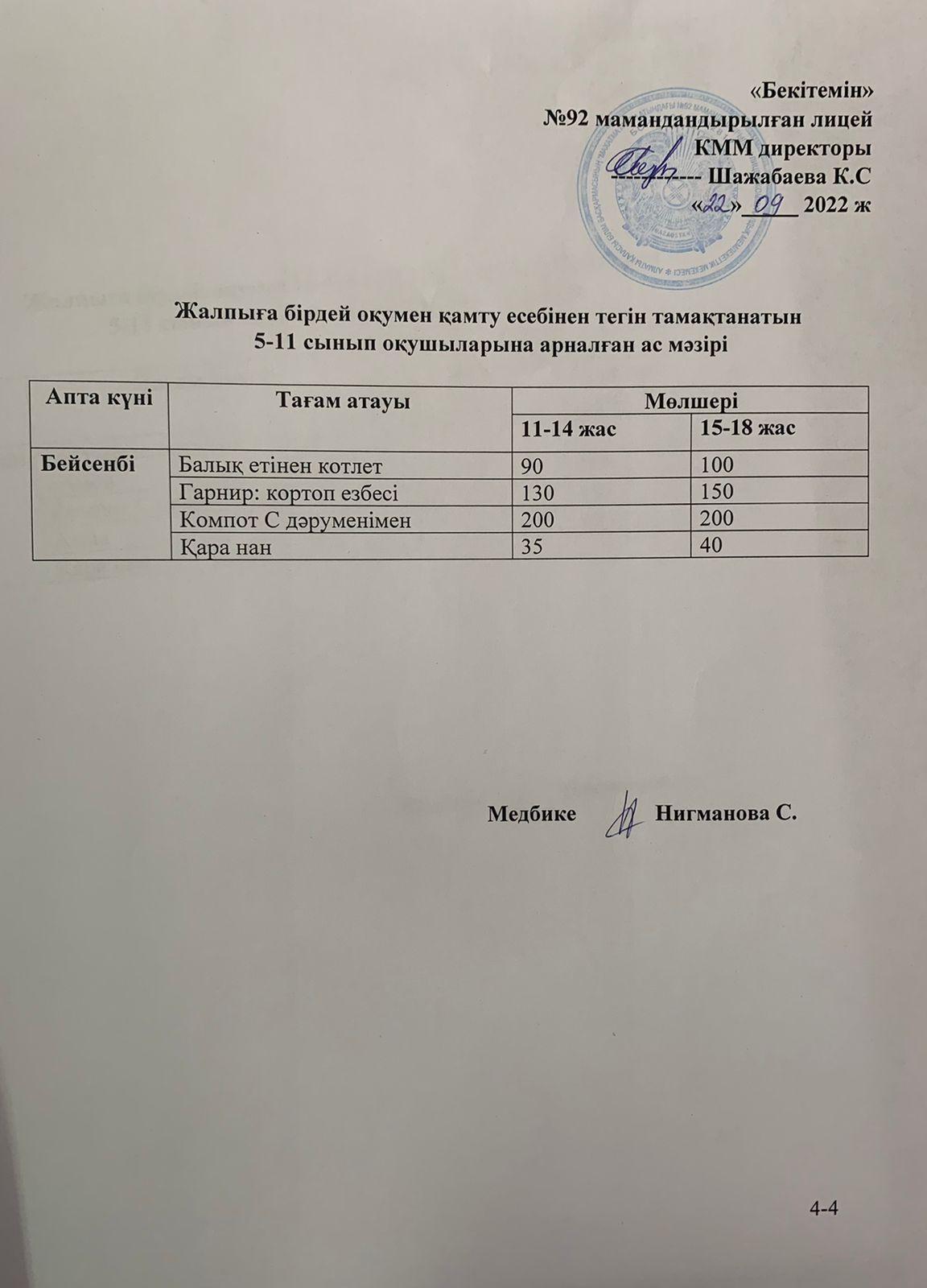 Ас мәзірі-20.09.2022 жыл