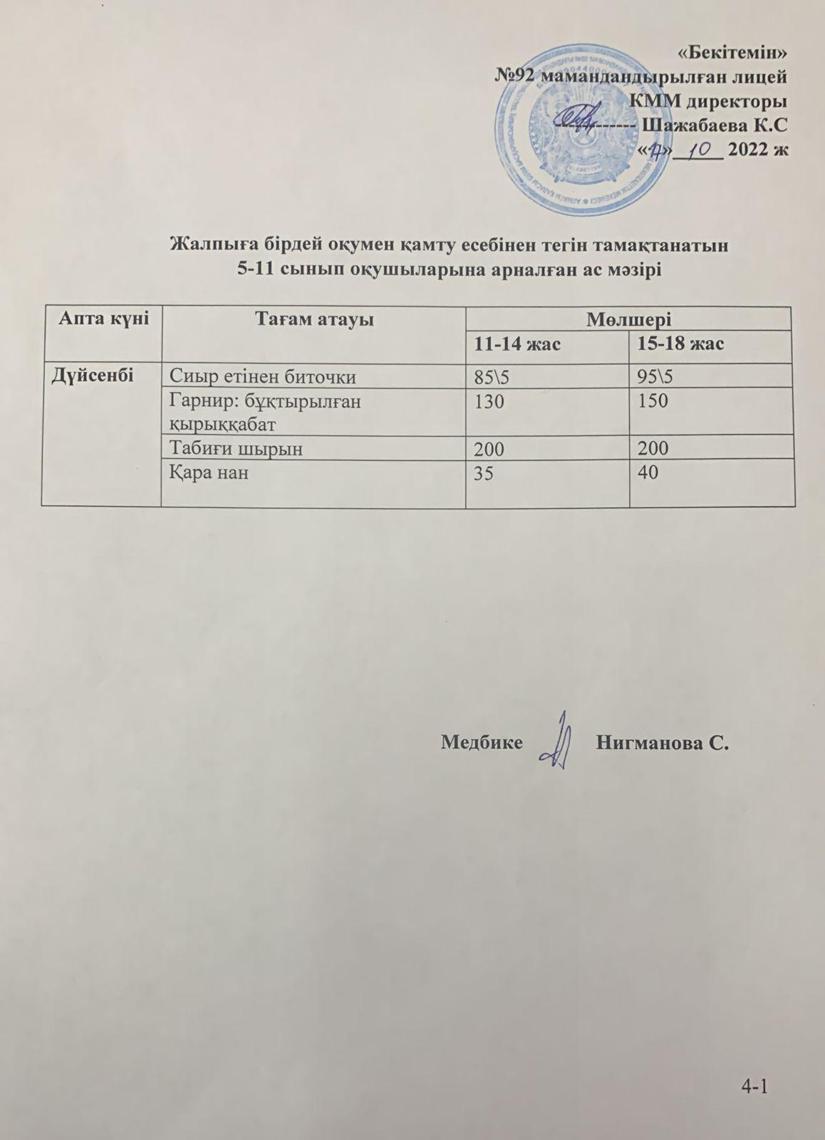 Ас мәзірі-22.09.2022 жыл
