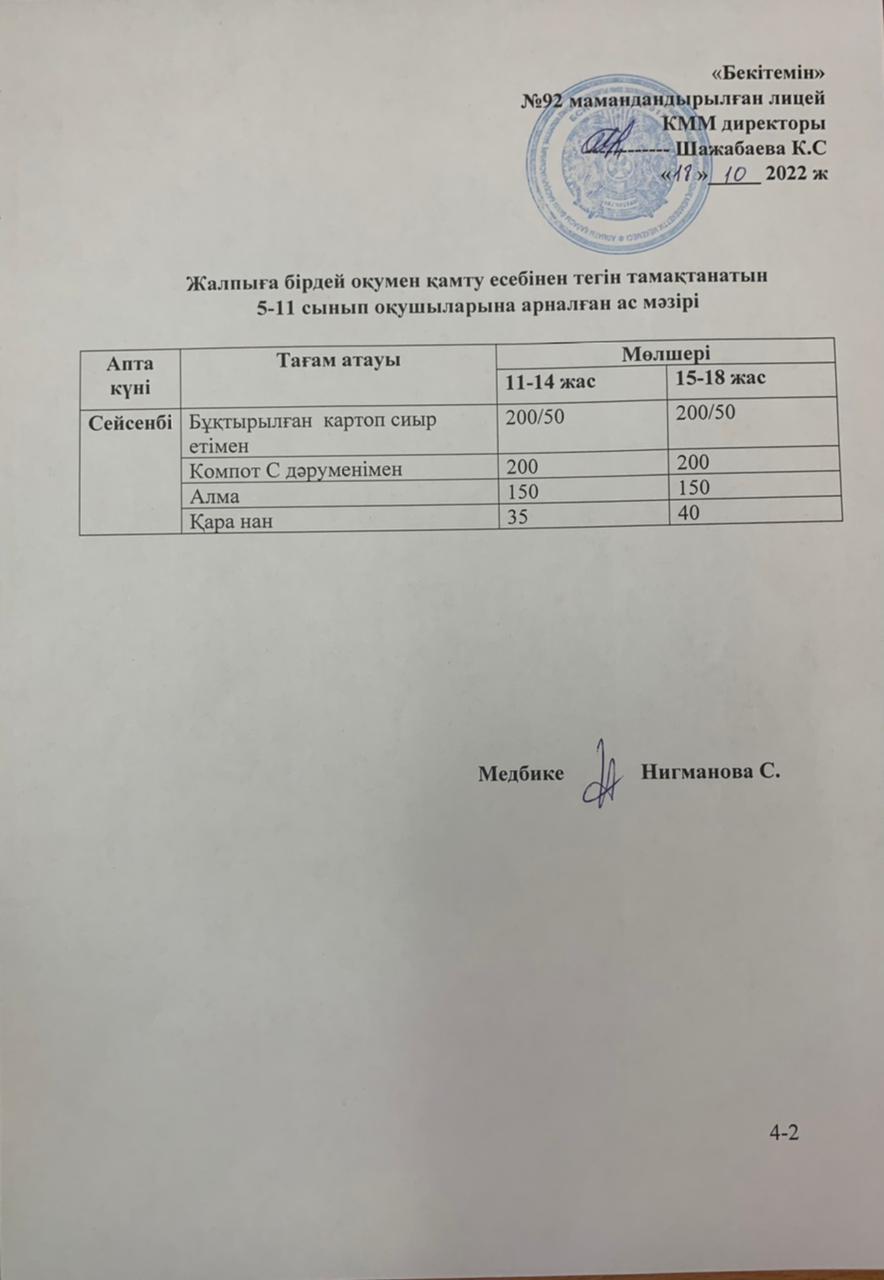 Ас мәзірі-18.10.2022 жыл