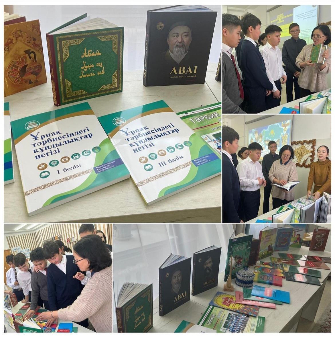 19.01.2023ж. күні «Ұрпақ тәрбиесіндегі құндылықтар» атты көрме өтті. Көрме аясында оқушыларға ұлттық құндылықтар туралы, ұлы тұлғалардың тәлім-тәрбиелік мәні бар кітаптары мен шығармаларымен таныстыру жұмыстары жүргізілді. Оқушылар оқыған кітаптары туралы айтып, ой-талқы өтілді.