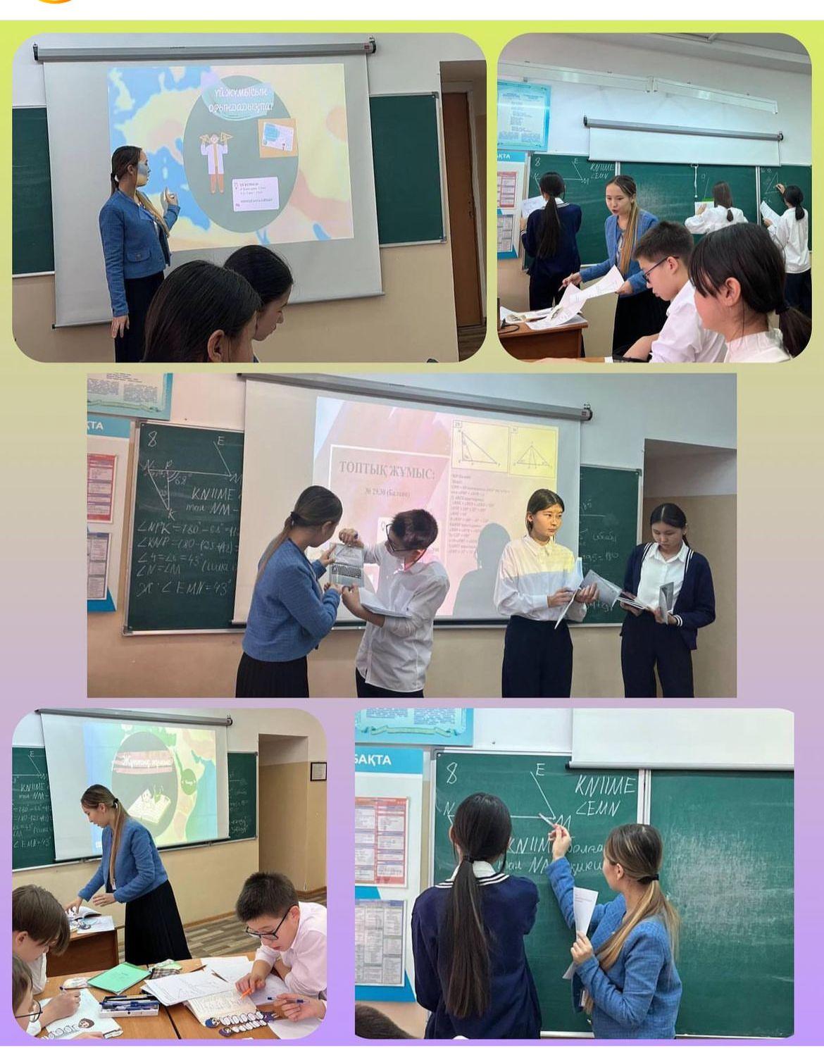 Махатма Ганди атындағы №92 мамандандырылған лицейде 2023 жылдың 2 ақпан күні Қазақ ұлттық қыздар педагогикалық университетінің 4-курс студенті Шайхолла Айшабибі Танатқызы 7 “Ә” сыныбына геометрия пәні бойынша “Үшбұрыштың ішкі бұрышының қосындысы. Сыртқы бұрыш” тақырыбында ашық сабақ өткізді.
