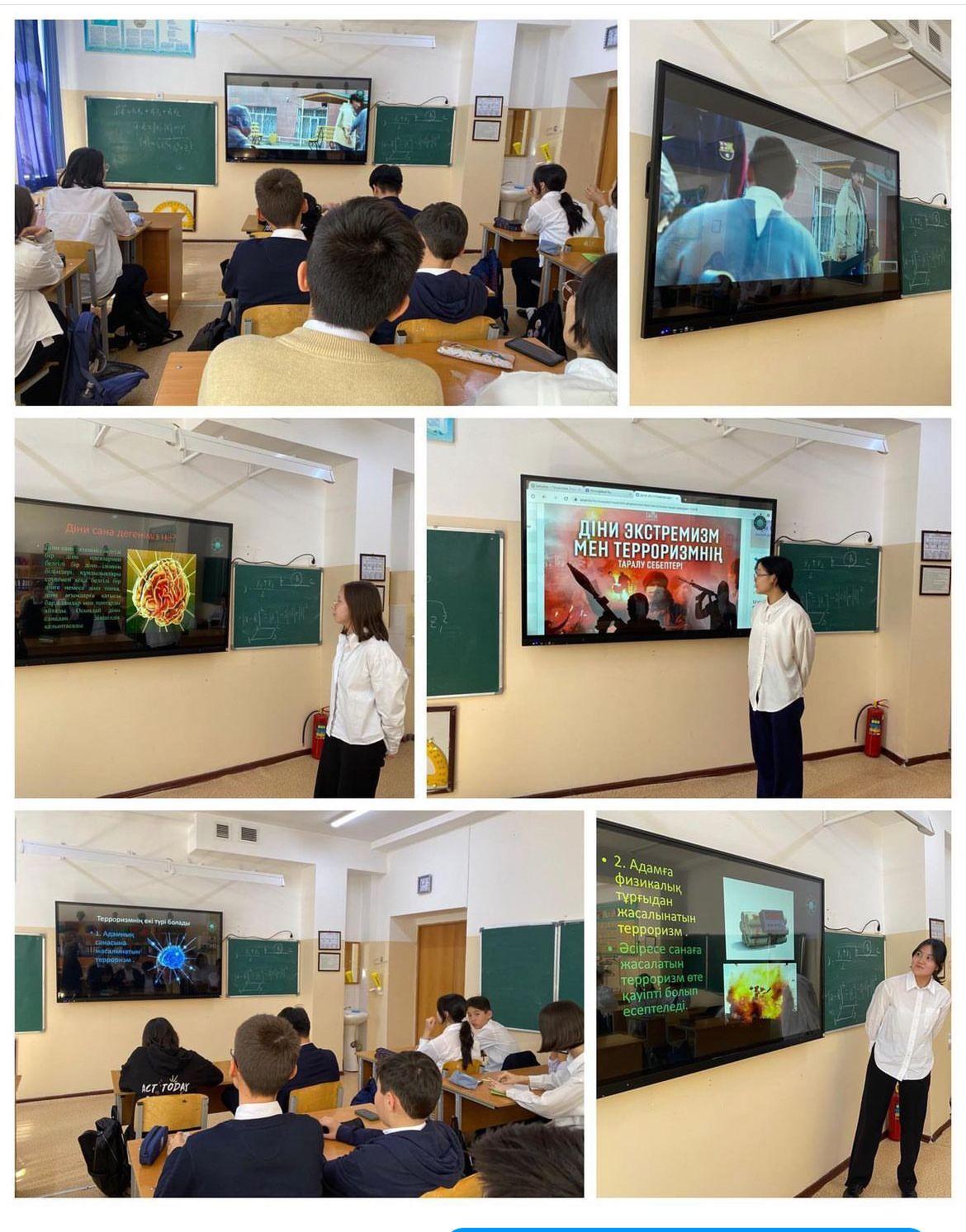 28 март 2023 0 1 2 3 4 5 Сынып сағаты: «Діни экстремизм мен терроризмнің таралу себептері» Наурыздың 28-і, 2023 жылы лицейіміздің 8 «Ә» сыныбында «Діни экстремизм мен терроризмнің таралу себептері» тақырыбында сынып сағаты өтілді. Сынып жетекшісі: Даукен Мөлдір.