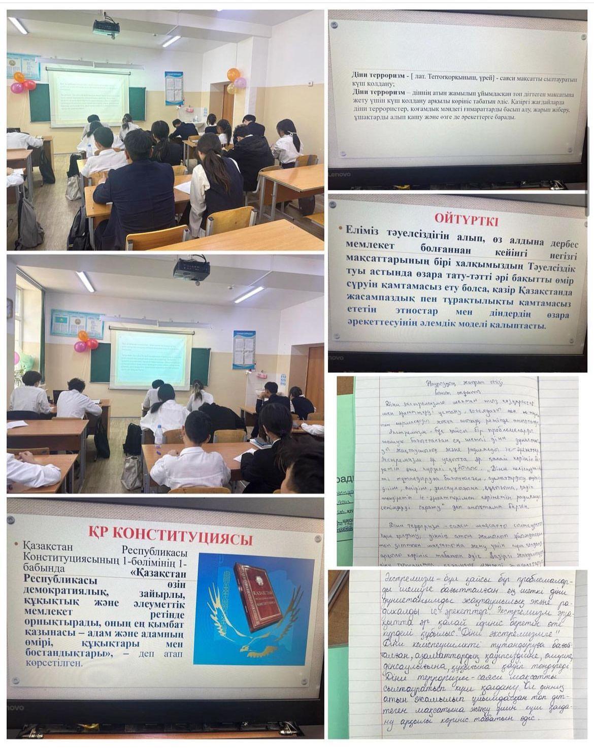 28 март 2023 0 1 2 3 4 5 Сынып сағаты: «Діни экстремизм мен терроризмнің таралу себептері» Наурыздың 28-і, 2023 жылы лицейіміздің 8 «В» сыныбында «Діни экстремизм мен терроризмнің таралу себептері» тақырыбында сынып сағаты өтілді. Сынып жетекшісі: Юлдашева Гулнур Базарбаевна