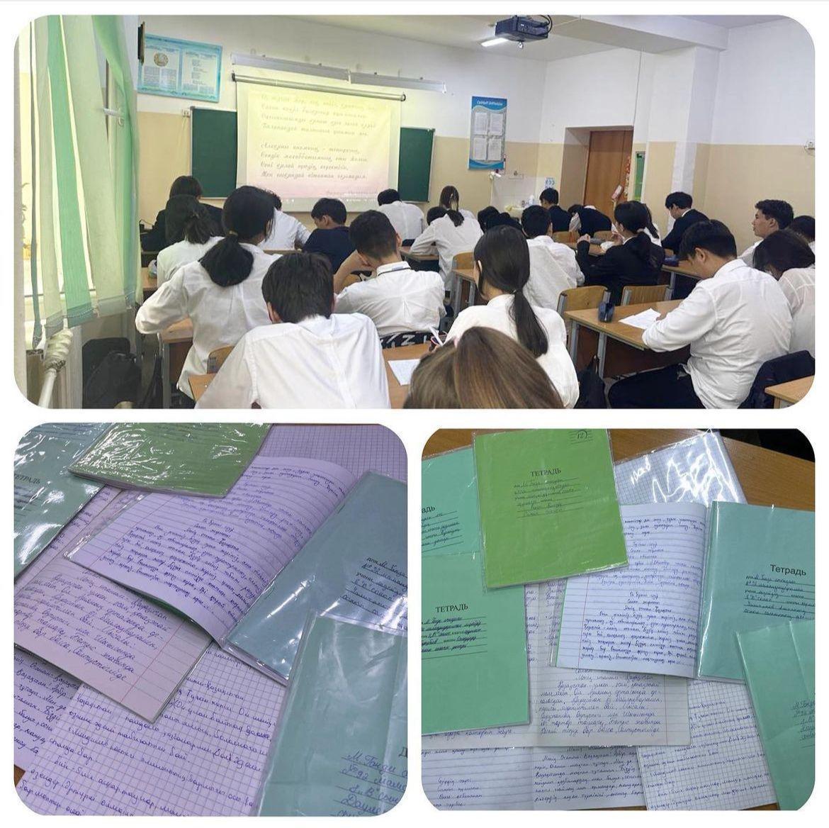 Оқушылар сабақта туған жерлеріне қатысты ақпараттармен танысты және шығарма жазды.