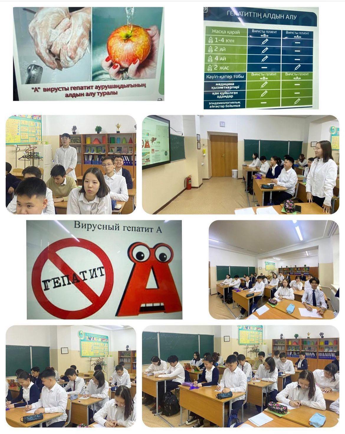 11 апрель 2023 0 1 2 3 4 5 Сынып сағаты: «Вирустық гепатиттің алдын алу» 11 сәуір 2023 жылы лицейіміздің 8 «Ә» сынып оқушыларына «Вирустық гепатиттің алдын алу» тақырыбында сынып сағаты өтілді.Сынып жетекшісі: Даукен Мөлдір
