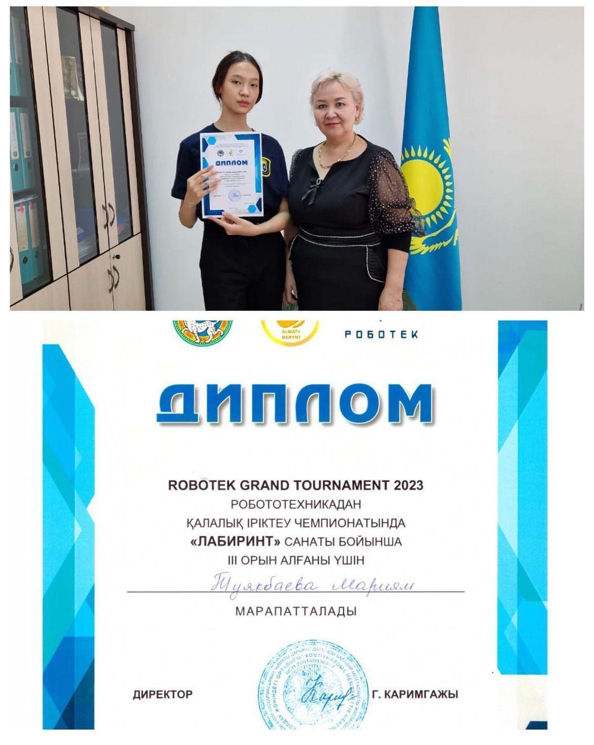 15 апрель 2023 0 1 2 3 4 5 «Robotek Grand Tournament» 2023 робототехникадан қалалық чемпионат «Robotek Grand Tournament» 2023 робототехникадан қалалық іріктеу чемпионатында «Лабиринт» санаты бойынша III орын алғаны үшін лицейіміздің оқушысы Туякбаева Мариям марапатталды!!!Құттықтаймыз!!!