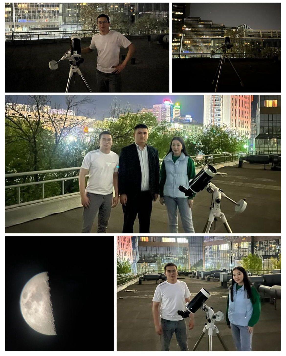 27 апрель 2023 0 1 2 3 4 5 Sky-Watcher телескобы арқылы Айды бақылады 27 сәуiр 2023 жылы лицейімiздiң физика пәні мұғалімдері Қайратұлы Ақылжан мен Қуандықова Алия Sky-Watcher телескобы арқылы Айды бақылады, нәтижесінде Айдың суретiн түсiру мүмкіндігіне ие болды.