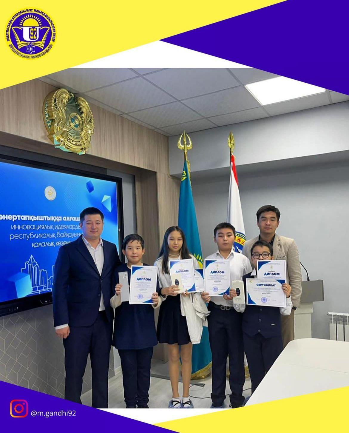 20.09.2023ж. «Ұлы Өнертапқыштыққа алғашқы қадам» инновациялық идеялар байқауының қалалық кезеңінде лицейіміздің оқушылары төмендегідей жетістіктермен марапатталды: