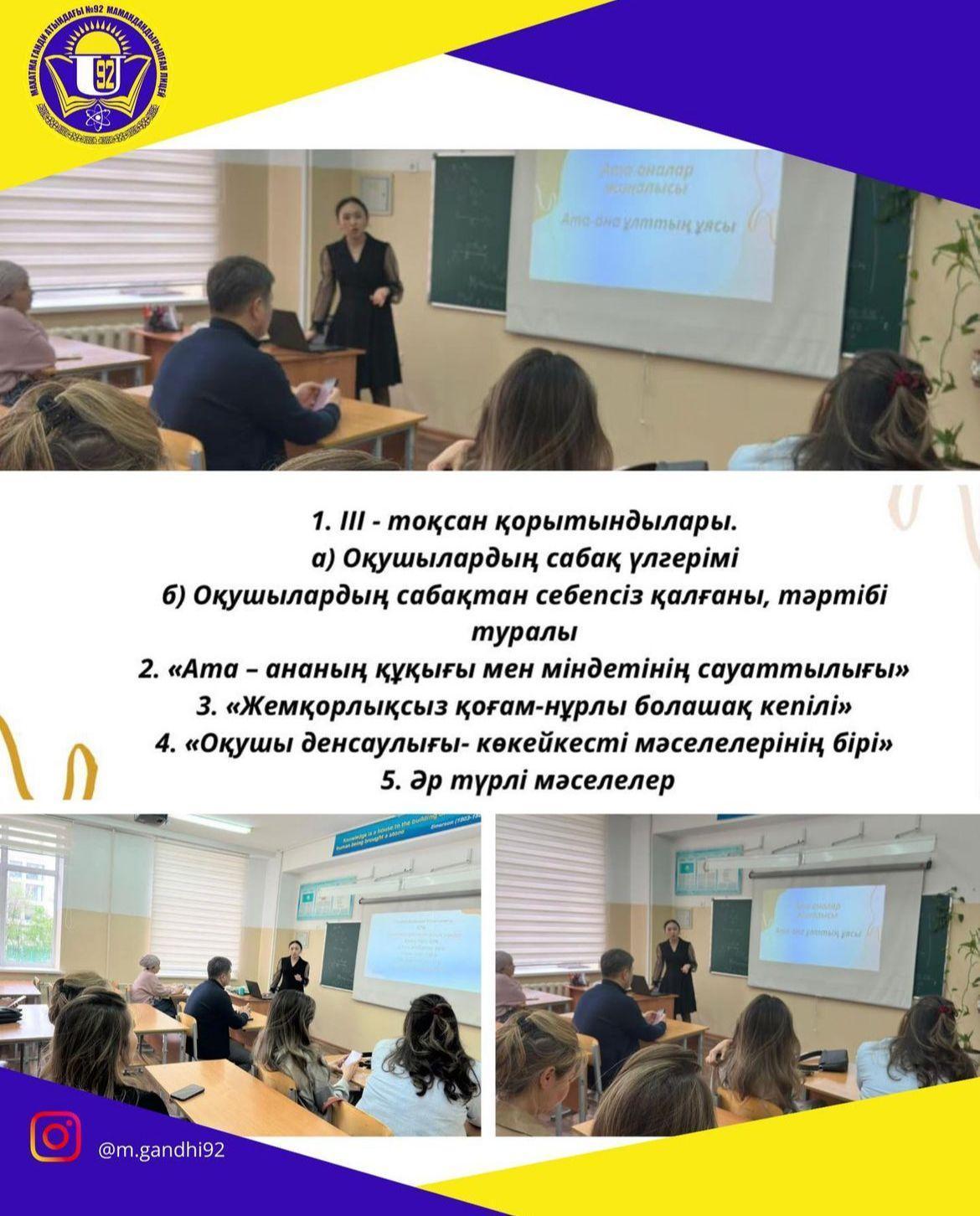 🔰Ата-ана жиналысында күн тәртібінде қарастырылған мәселелер: