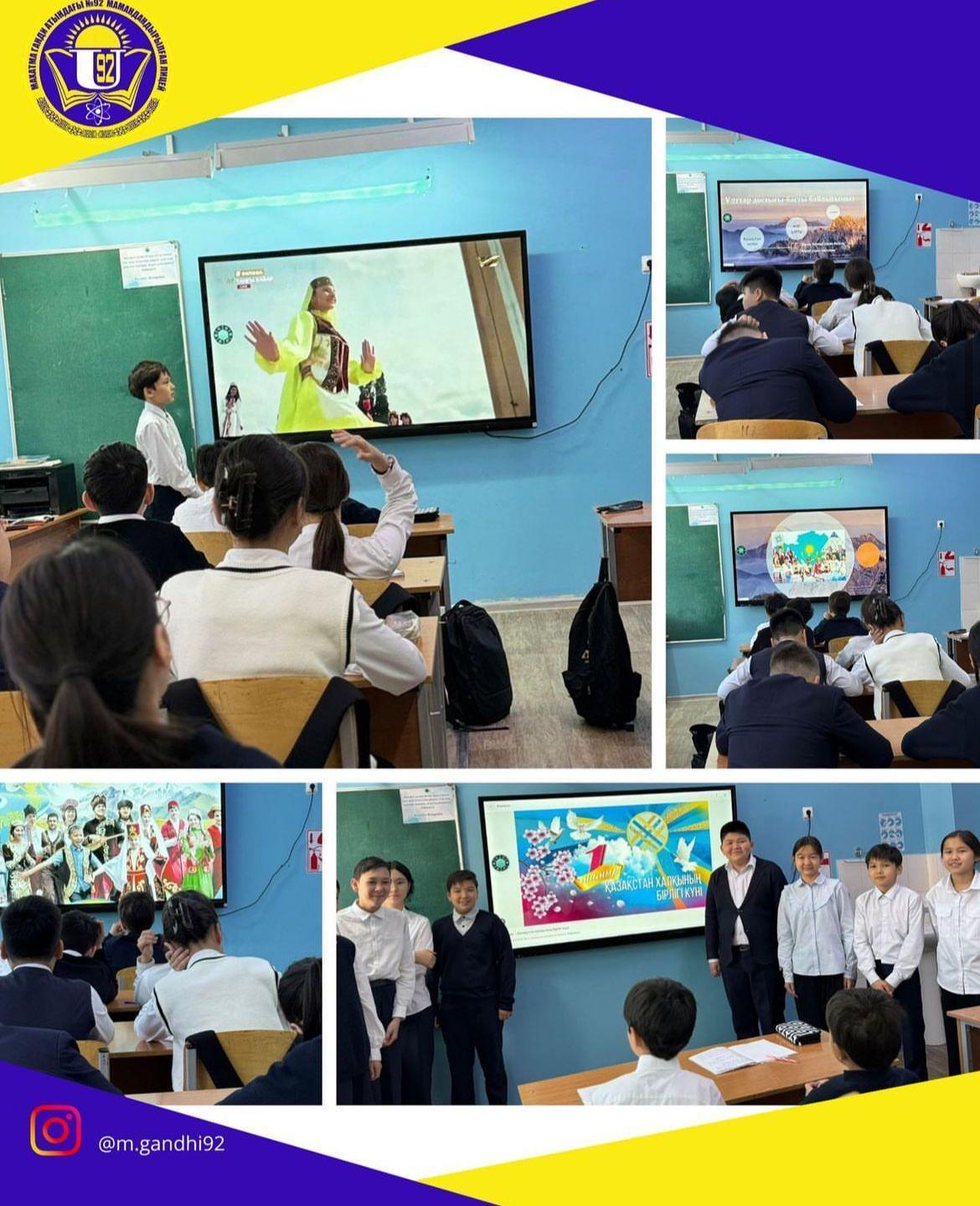 30.04.2024ж.6 «Ә» сыныбында «Бірлігі мен ынтымағы жарасқан, көп ұлтты – Қазақстан» -деген тақырыпта сынып сағаты өтілді.