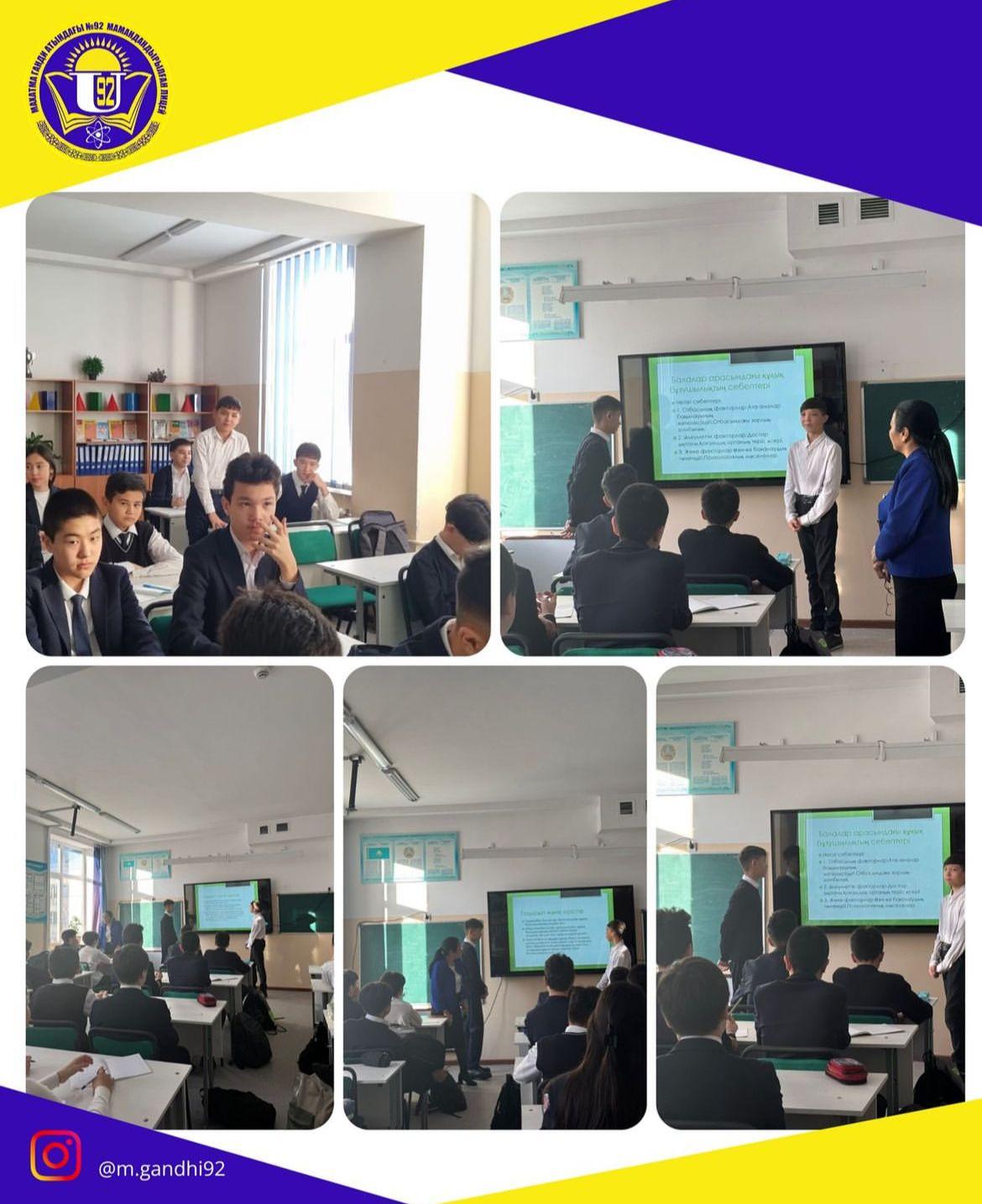 18.11.2024ж.8«А» сыныбында «Балалар арасындағы құқық бұзушылықтың алдын алу»тақырыбында сынып сағаты өткізілді. 🔰Мақсаты:кәмелетке толмаған балалардың құқық бұзышылық шараларының алдын алу. ❇️Сынып жетекшісі:Несипберген Ф.