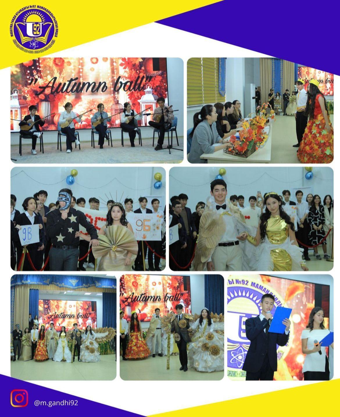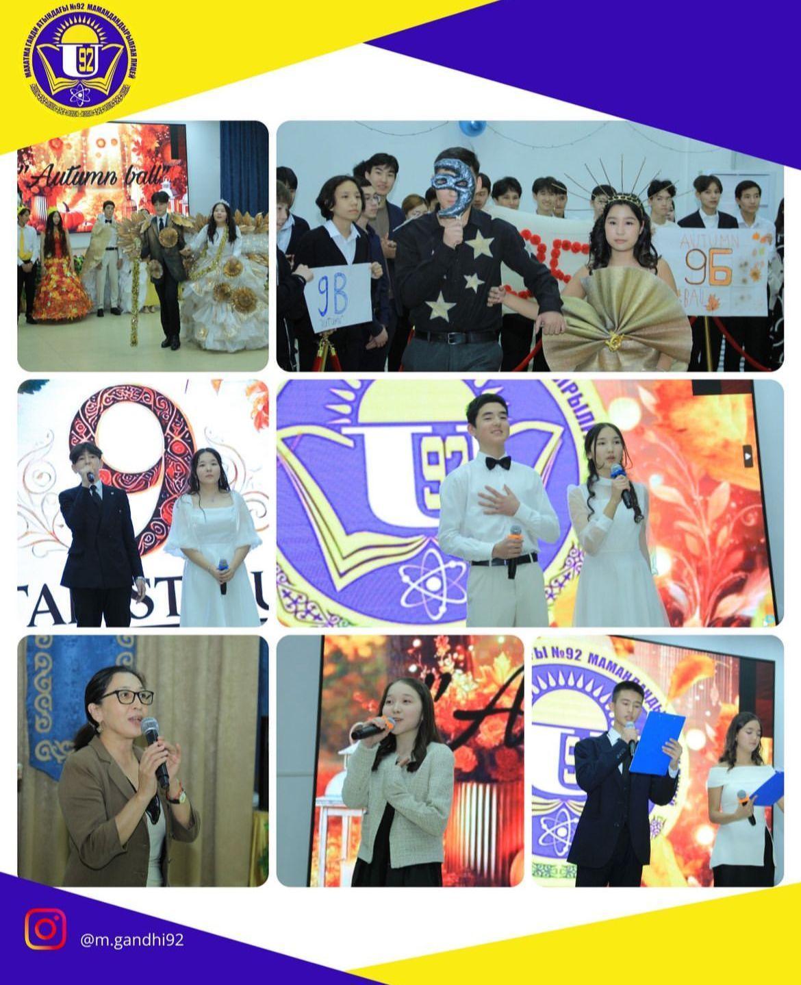 19.11.2024ж.Махатма Ганди атындағы №92 мамандандырылған лицейінде 9 сынып оқушыларының қатысуымен мектепішілік «Алтын күз» байқауы өткізілді.