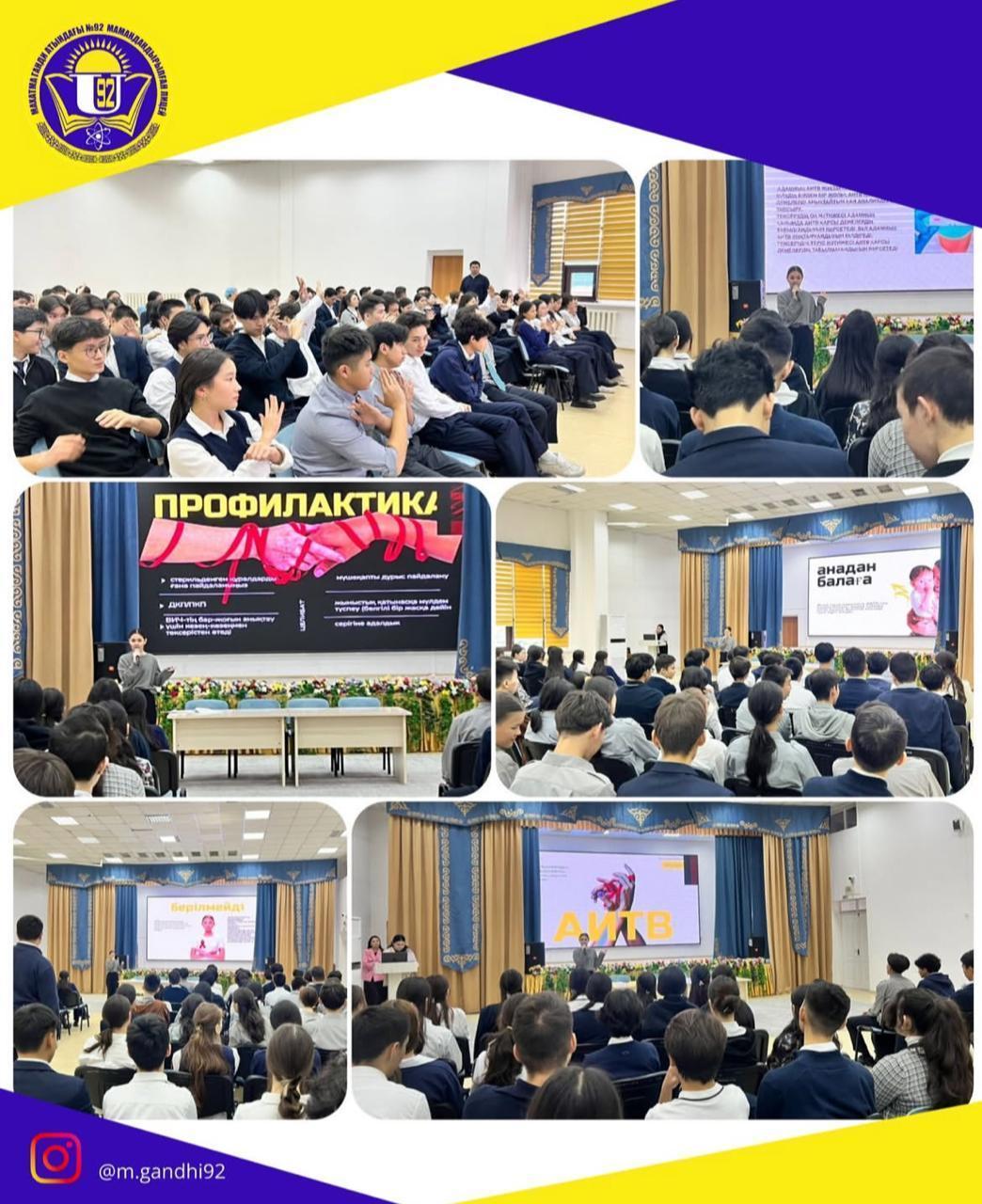 25.11.2024ж.Лицейімізге қалалық ЖИТС орталығының эпидемиолог дәрігері Джуманова Анель Ержановна және АИТВ-ға қарсы жастар орталығының мүшесі Шали Медина келіп 10-сынып оқушыларына АИТВ туралы толық және ғылыми негізделген ақпарат беріп, аурудың таралу жолдары мен алдын-алу шараларын түсіндіріп өтті.