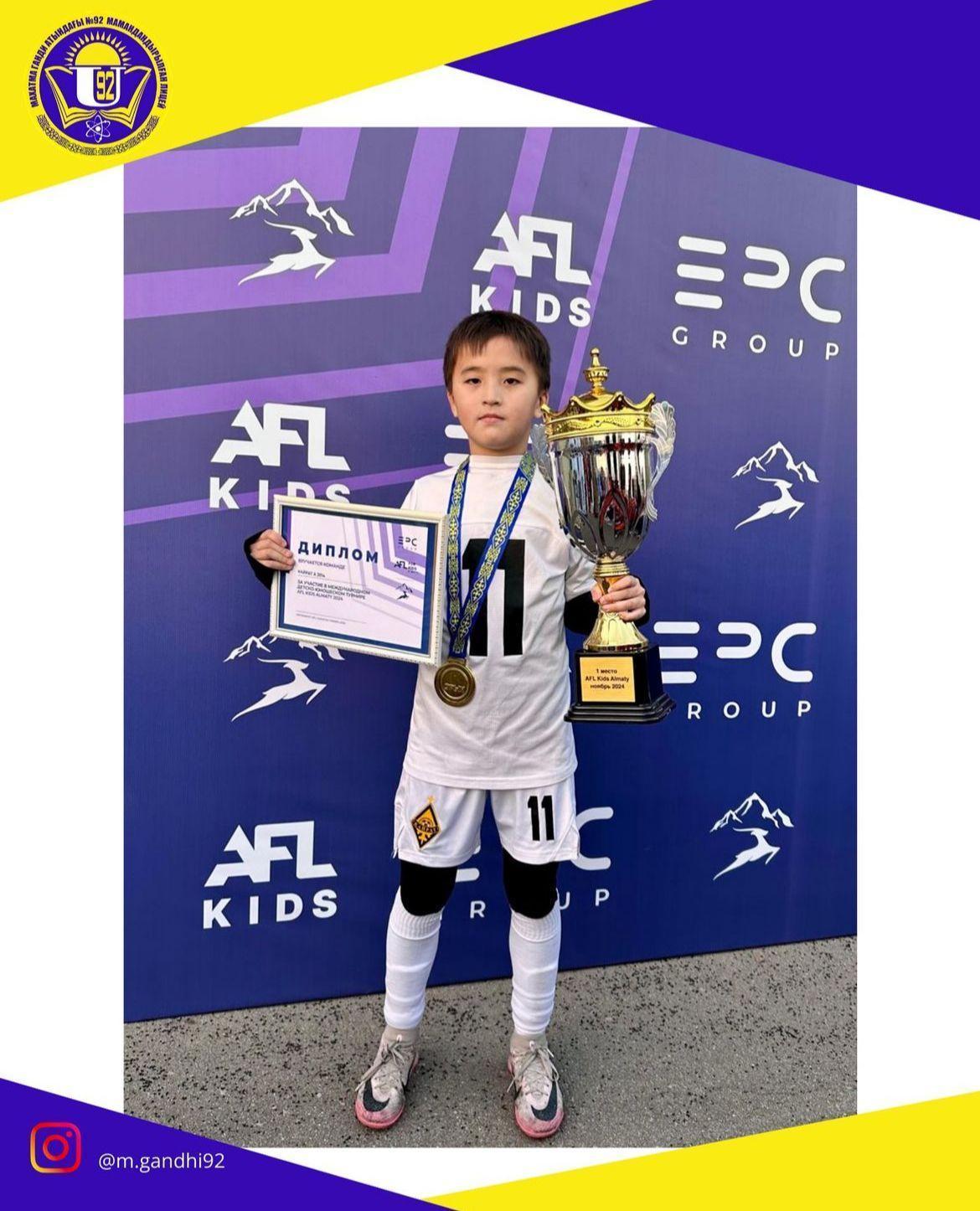 5 “А” сынып оқушысы Байменов Ибрахим “Қайрат” командасының құрамында футболдан AFL Kids Almaty жарысында 1-орын алды.