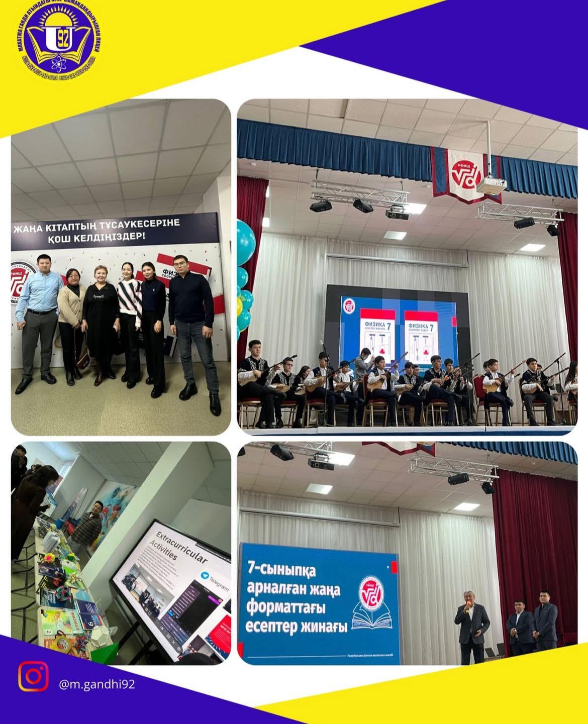 М.Ганди атындағы №92 мамандандырылған лицей әкімшілігі мен физика пәні мұғалімдері «Республикалық физика-математика мектебінің» қабырғасында өтілген «Физикадан 7-сыныпқа арналған жаңа форматтағы есептер жинағының» тұсаукесеріне қатысты.