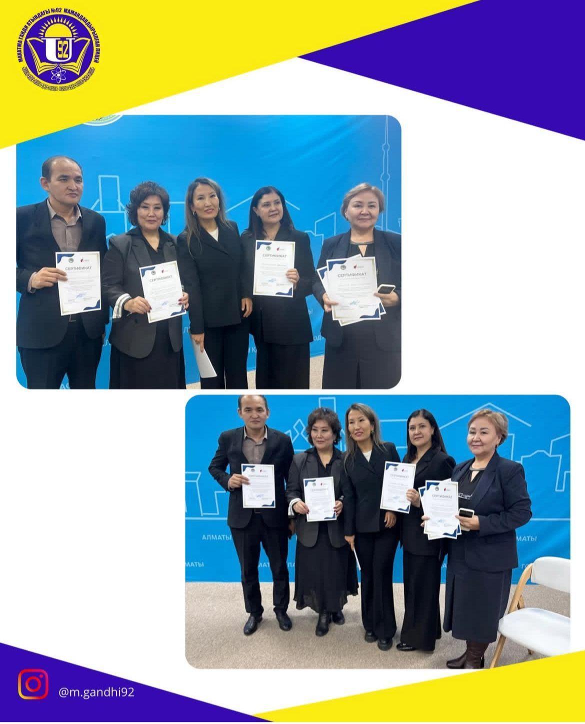 Білім беру ортасында кәсіби өсуге ұмтылуда және Алматы қаласында табысты, бәсекеге қабілетті мектептерді құруда, менеджмент жүйесін дамытуға белсенді үлес қосқаны үшін сертификатпен марапатталды.