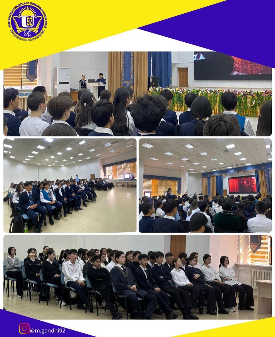 17.01.2025ж. күні М.Ганди атындағы №92 мамандандырылған лицейдің 10-11 сынып оқушыларына Бостандық ауданы прокуратурасының бөлім прокуроры Ризван Санжар Қайруллаұлы “Жақсылыққа жол аш, нашақорлыққа жол берме!” тақырыбында дәріс өткізді.