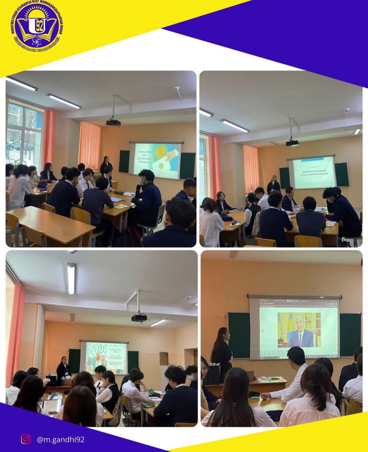 Бүгін 03.02.2025 күні 10 “В” сыныбында ”Әркімнің дауысы маңызды: демократиялық қоғамдағы сайлаудың рөлі” тақырыбында сынып сағаты өтілді.