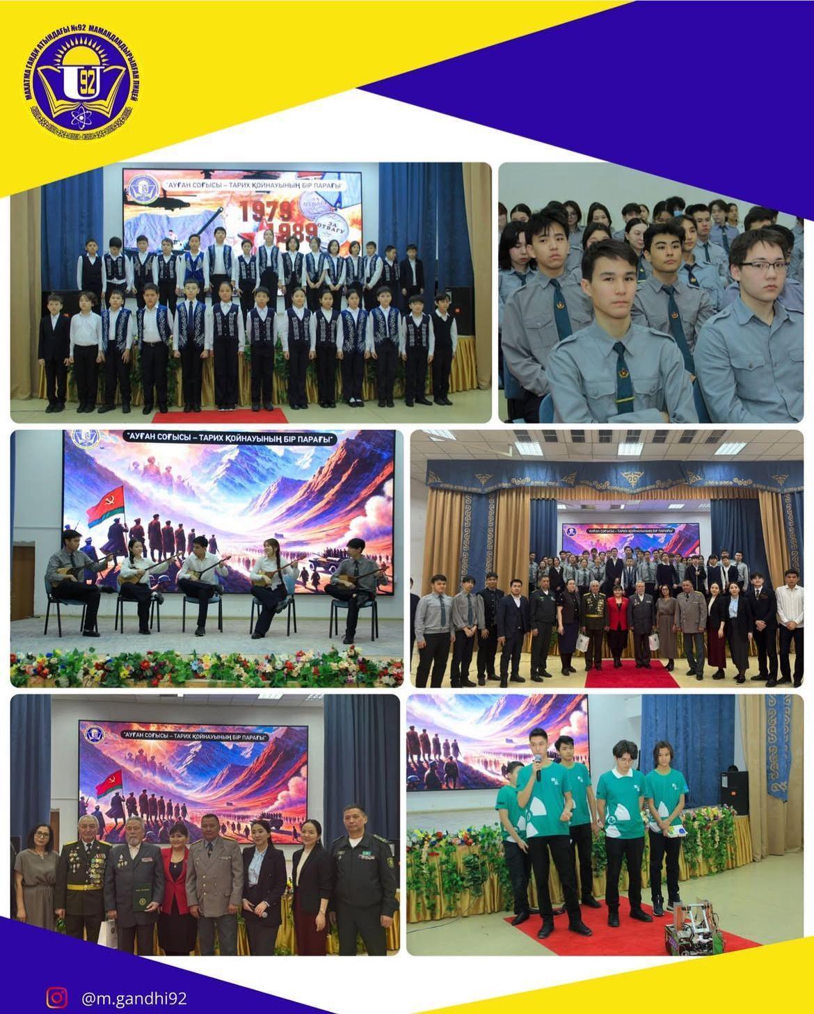 2025 жылдың 4 ақпан күні Махатма Ганди атындағы №92 мамандандырылған лицейінде Ауған соғысының аяқталғанына 36 жыл толуына орай «Жұлдыздар сөнбейді. Ауған батырлары» атты іс-шара лицей әкімшілігінің басшылығымен ДТІЖО Орынбаева Алия Ахметовна мен АӘжДТ мұғалімі полковник Журекбаев Серик Сейтказиновичтің ұйымдастыруымен өткізілді. Бұл іс-шара Ауған соғысы ардагерлерінің ерлігін ұлықтап, олардың батырлығын жастарға насихаттау мақсатында ұйымдастырылды.