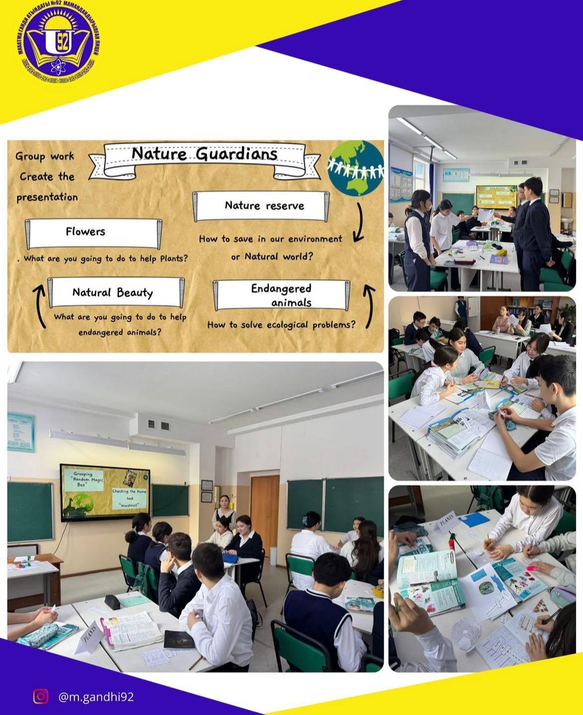 Және айтылым дағдысы бойынша “Nature Guardians” тақырыбында топтық жұмыстар жасалды.