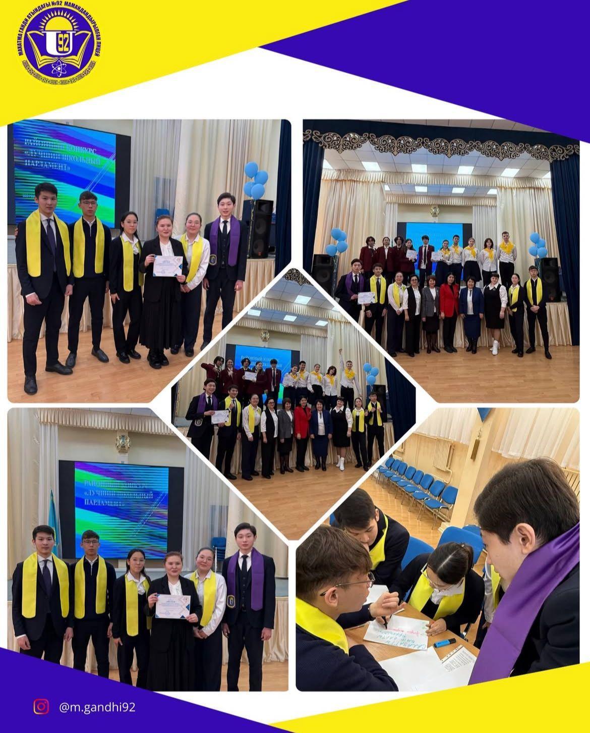 «Үздік мектеп Парламенті» Республикалық байқауының аудандық кезеңінде М.Ганди атындағы №92 мамандандырылған лицейі I дәрежелі дипломымен марапатталды.