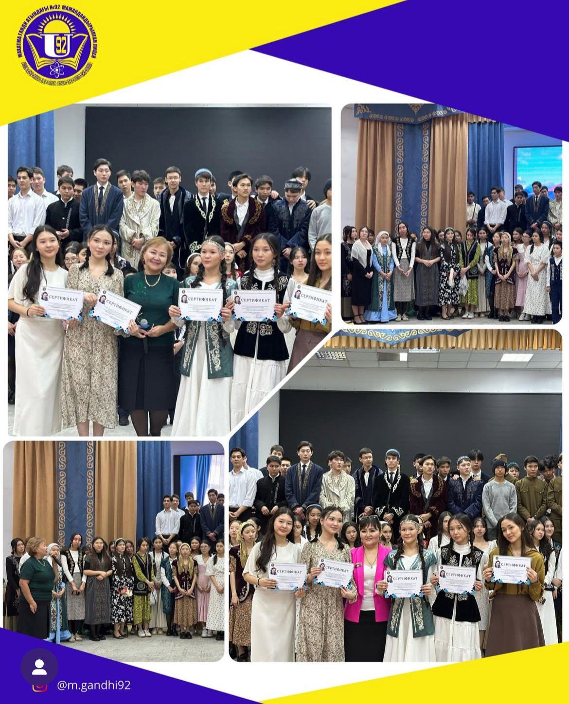 28.02.2025ж.Қоғамдық-гуманитарлық пәндер кафедрасының онкүндігі аясында “Бір кітаптың ізімен” жобасы негізінде Жүсіпбек Аймауытовтың “Ақбілек” романын сахналауда 10 -сыныптар арасында үздік қойылым болды.