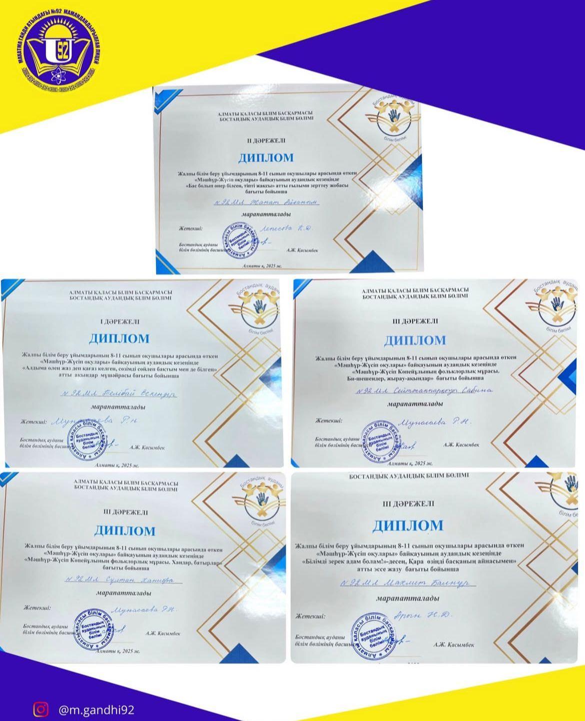 Жалпы білім беру ұйымдарының 8-11 сынып оқушылары арасында өткен «МәшҺүр-Жүсіп оқулары» байқауының аудандық кезеңінің жеңімпаздары: