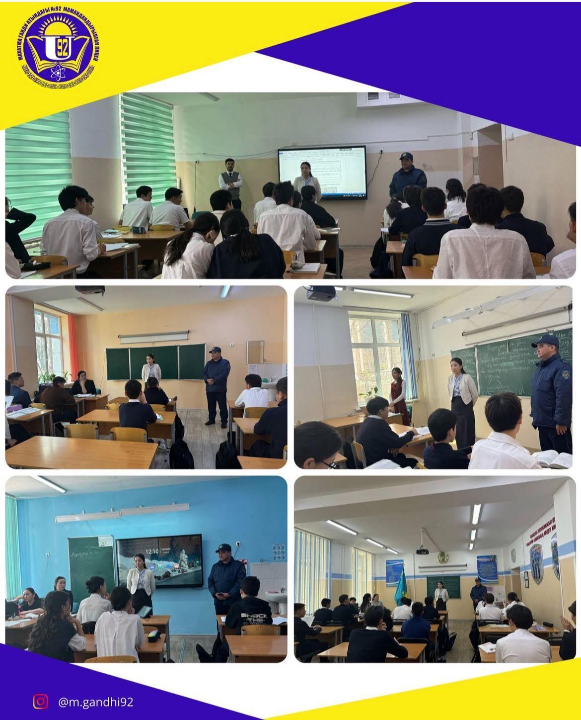 13.03.2025ж.М.Ганди атындағы №92 мамандандырылған лицей инспекторы Әлжанов Арман және директордың тәрбие ісі жөніндегі орынбасары Қуандықова Алия Сейілханқызы оқушыларға «Қауіпсіз жол қозғалысы ережелері» тақырыпта түсініктеме жұмыстарын жүргізді.