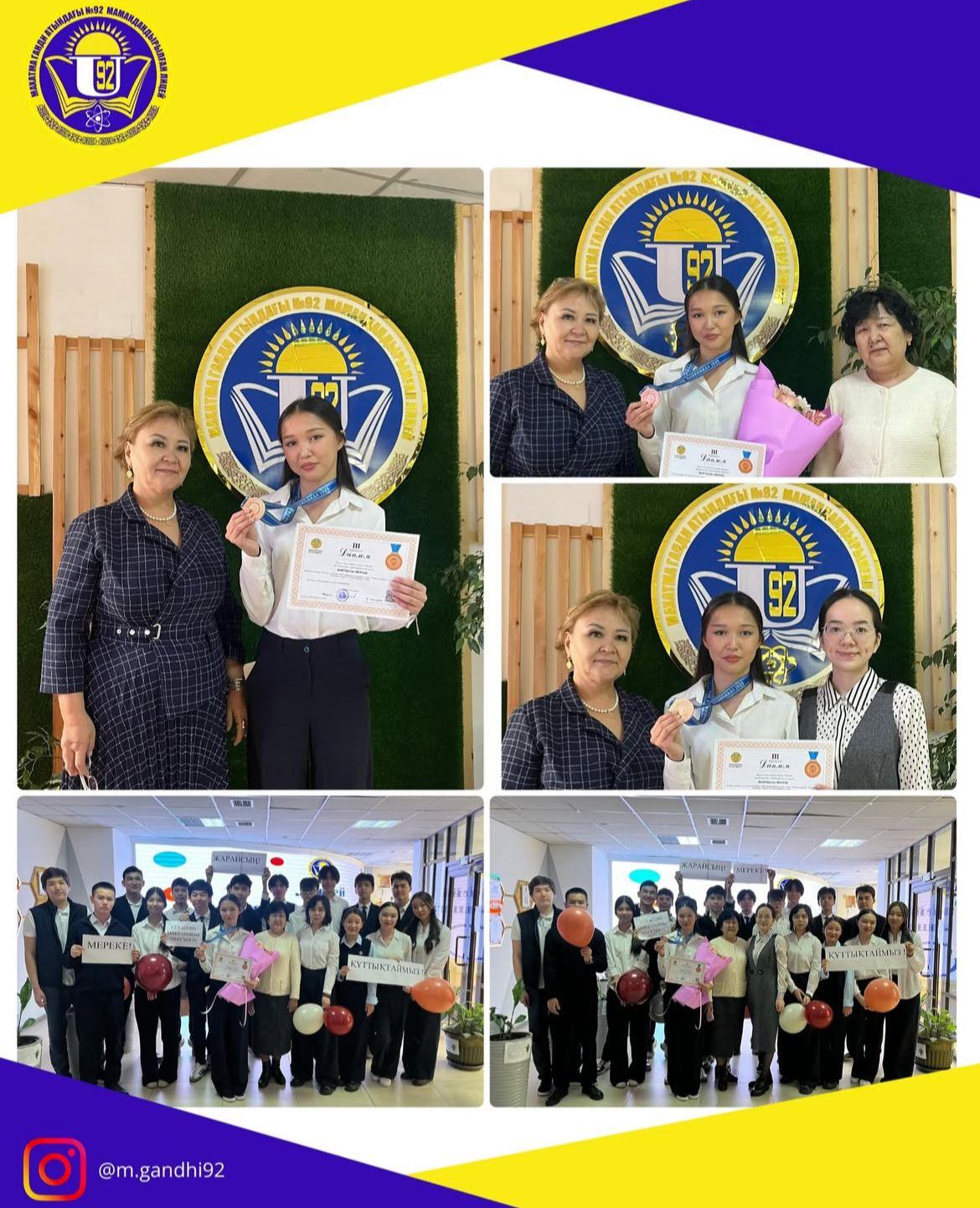 Олимпиададан жеңіспен оралған 10 «А» сынып оқушысы Миятқызы Мерекені лицей директоры Шажабаева Кульжан Сауытовна мен сыныбы, жетекшісі ыстық ықыласпен қарсы алып, зор қуанышпен құттықтады. Олар оқушының табандылығы мен еңбегін жоғары бағалап, алдағы білім жолына сәттілік тіледі.