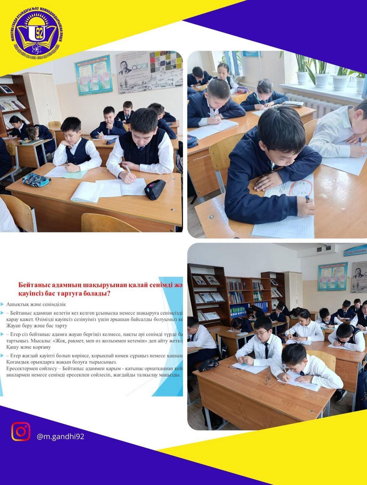 21 сәуір 2025 жылы 5 «А» сыныбында «Бейтаныс адамның шақыруынан қалай сенімді және қауіпсіз бас тартуға болады?» тақырыбында сынып сағаты өткізілді.