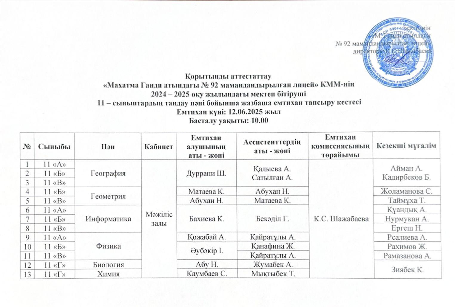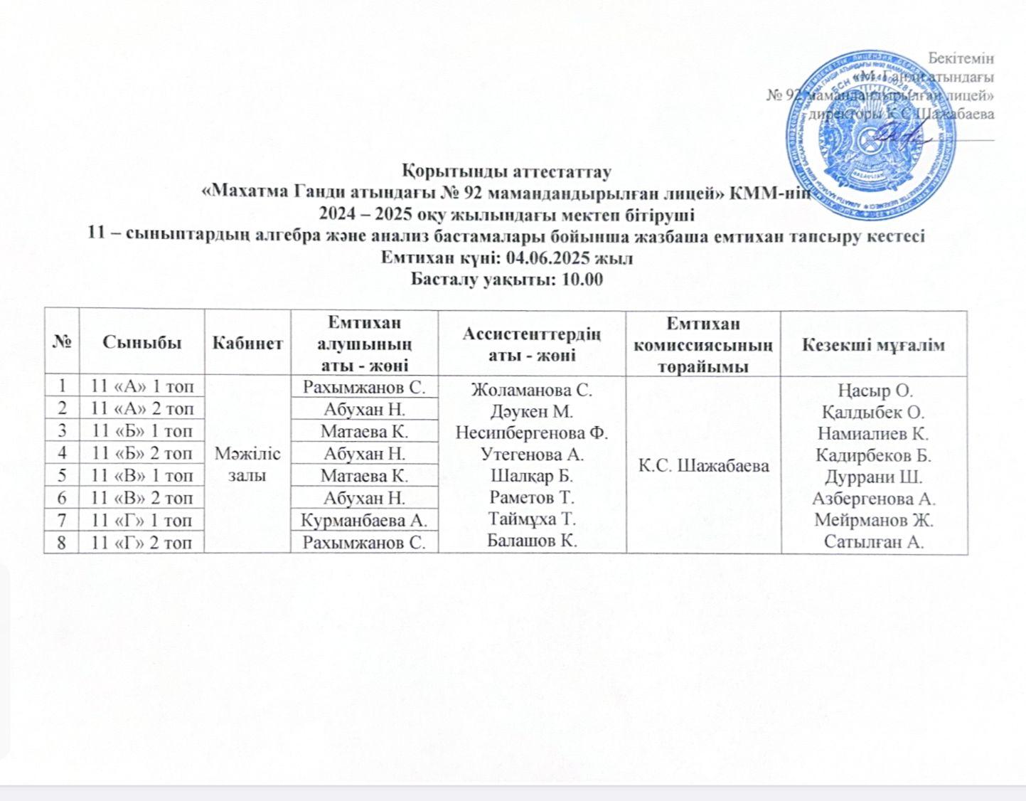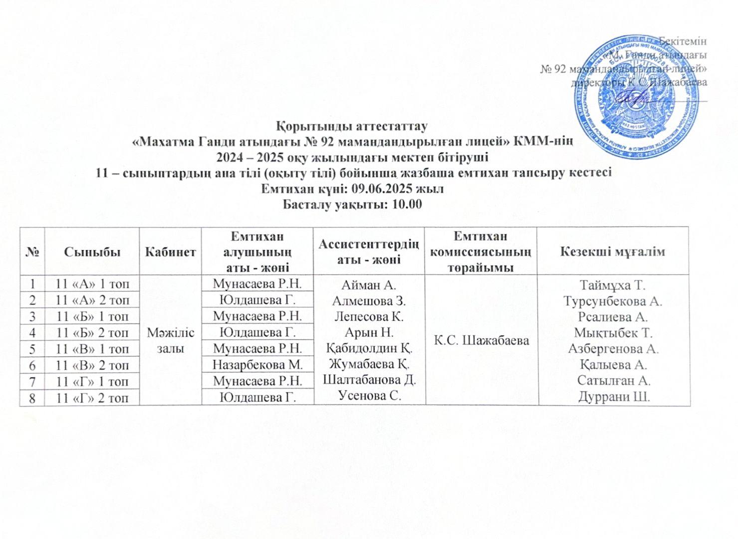 КГУ «Специализированный лицей №92 имени Махатма Ганди» Управления образования города Алматы
