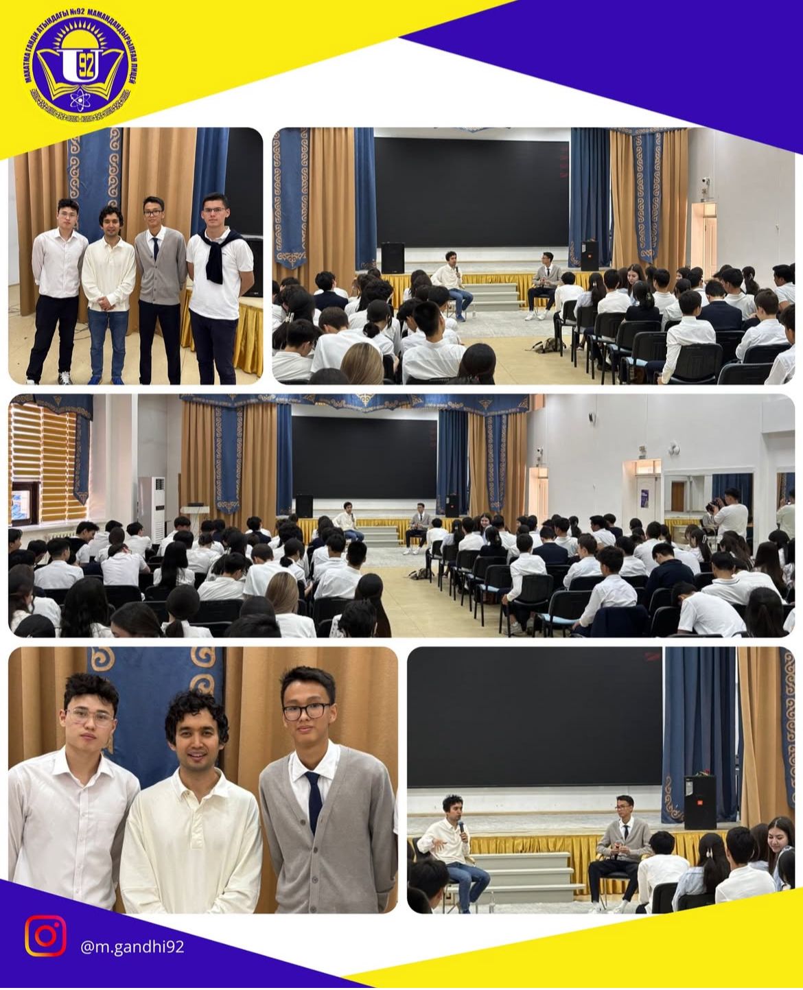 16.05.2025ж. күні Махатма Ганди атындағы №92 Мамандандырылған лицейі 11«Б» сынып оқушыларының ұйымдастыруымен Арман Сүлейменовпен сұхбат форматындағы кездесу өтті. Ол танымал IT-кәсіпкер және nFactorial Group компаниясының негізін қалаушы.