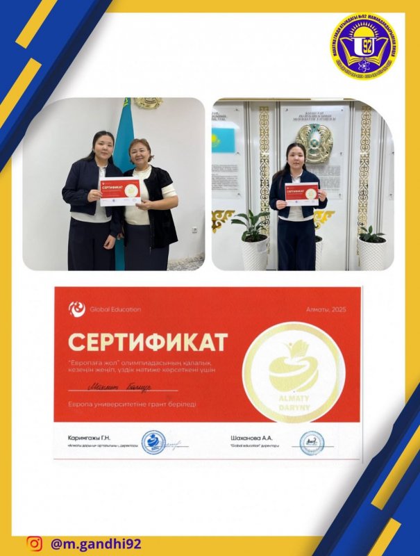 «Европаға жол» олимпиадасының қалалық кезеңінде жеңіске жетіп, үздік нәтиже көрсеткені үшін Махмет Балнұрға Еуропа университетіне грант беріледі! 🎓✨