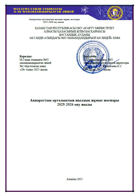 Ақпараттық орталық жылдық жұмыс жоспары 2025-2026 оқу жылы