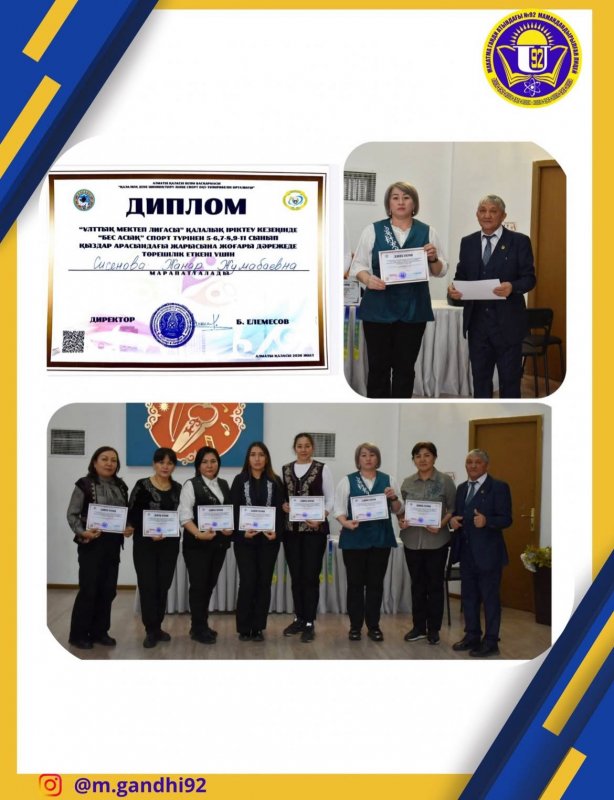 Ұлттық спорт түрі «Бес асық» бойынша 5–6, 7–8, 9–11 сынып оқушылары арасында өткен қалалық іріктеу кезеңінде төрешілік еткені үшін Сисенова Жанар Жұмабекқызы 🏆 Дипломмен марапатталды!
