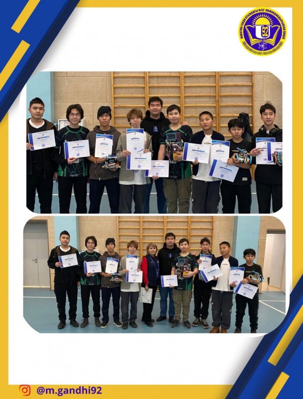 19–20 күндері Алматы қаласында өткен Robotek Grand Tournament халықаралық робототехникадан қалалық іріктеу чемпионатында М.Ганди
