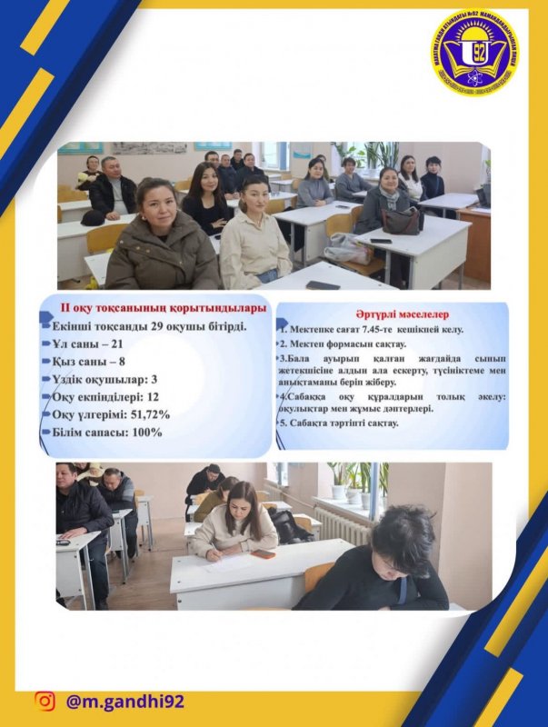 30 қаңтар 2026 жылы 6 «А» сыныбында «Отбасындағы тәрбие – ұлт болашағының кепілі» тақырыбында ата-аналар жиналысы өтті. Күн тәртібіндегі мәселелер: