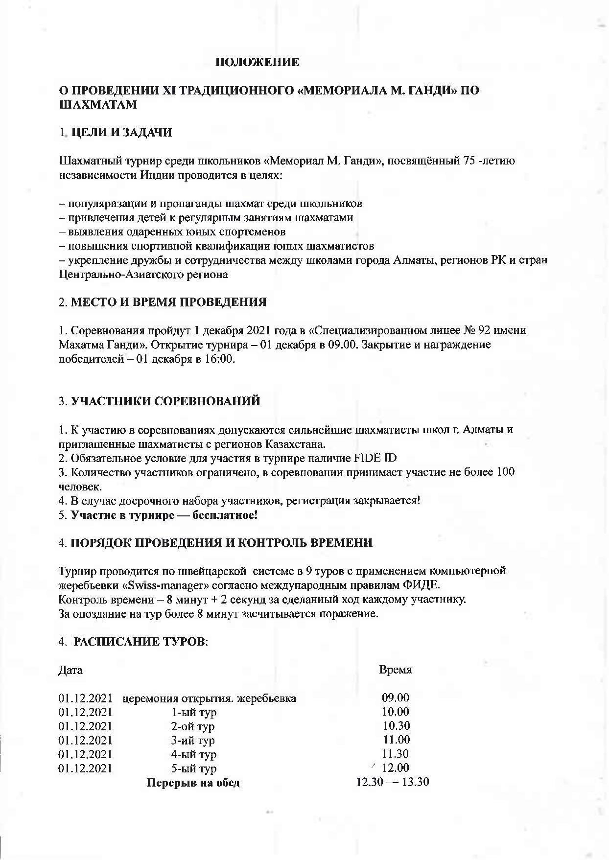 ПОЛОЖЕНИЕ О ПРОВЕДЕНИИ XI ТРАДИЦИОННОГО «МЕМОРИАЛА М. ГАНДИ» ПО ШАХМАТАМ