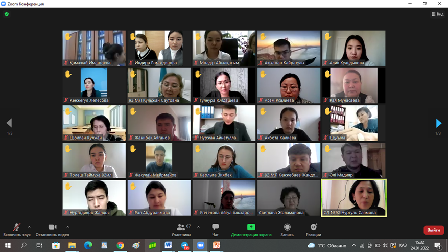 24.01.2022 жылы Махатма Ганди атындағы #92 мамандандырылған лицейде әдістемелік семинар өтті. Әдістемелік семинар тақырыбы: Қашықтықтан оқыту кезінде АКТ мен жұмыс және тиімді платформаларды сабақтарға қолдану. Информатика пәні мұғалімдері сабақта қолдануға арналған тиімді платформалармен және жаңа мүмкіндіктерімен таныстырды.Информатика пәні мұғалімі Нурмукан Айдана whell decide және socrative онлайн платформаларын көрсетті.Информатика пәні мұғалімі Әлібекова Камила Нұрдәулетқызы Canva.com онлайн платформасының мүмкіндіктерімен, ерекшеліктерімен таныстырды.