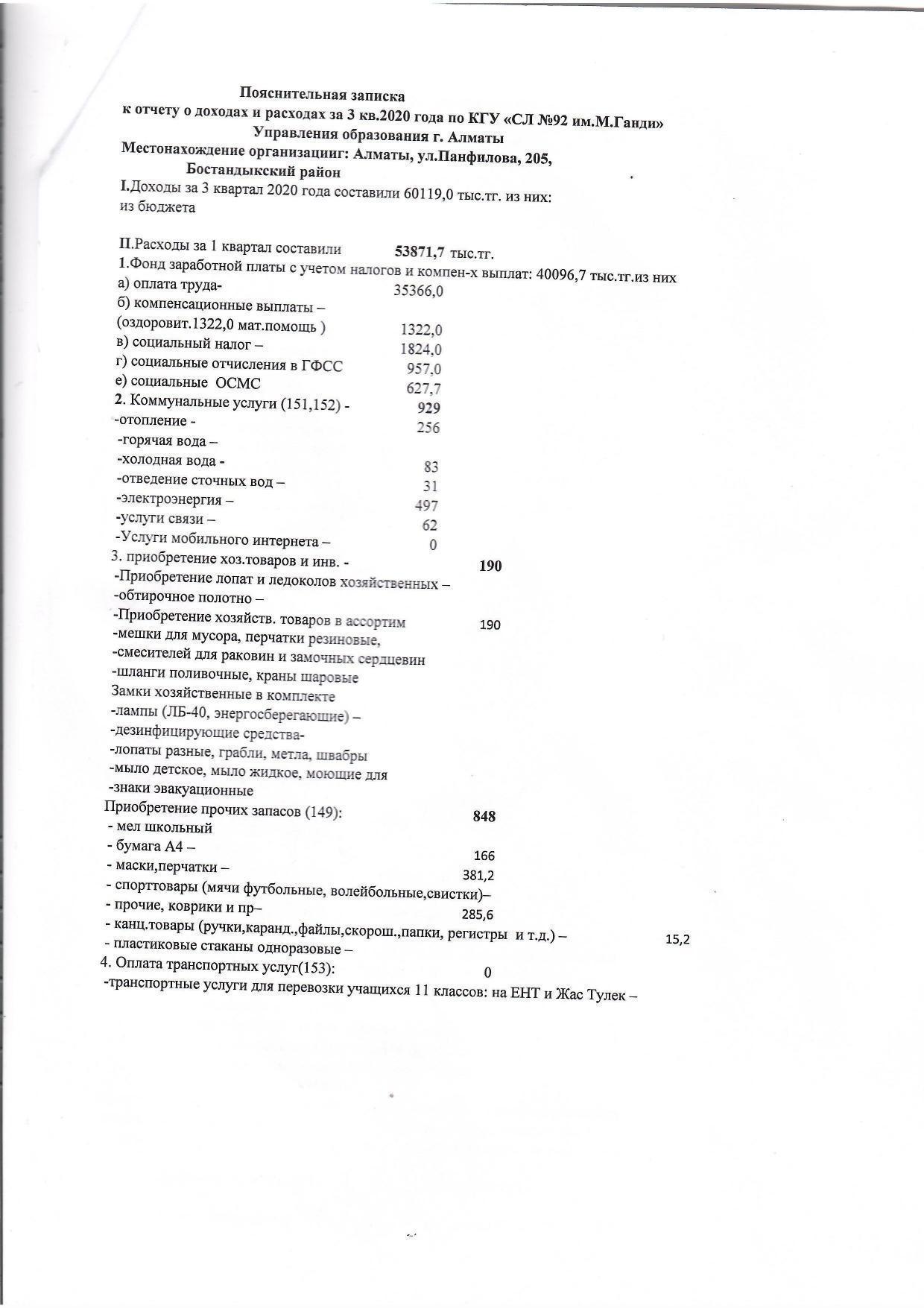 КГУ «Специализированный лицей №92 имени Махатма Ганди» Управления образования города Алматы