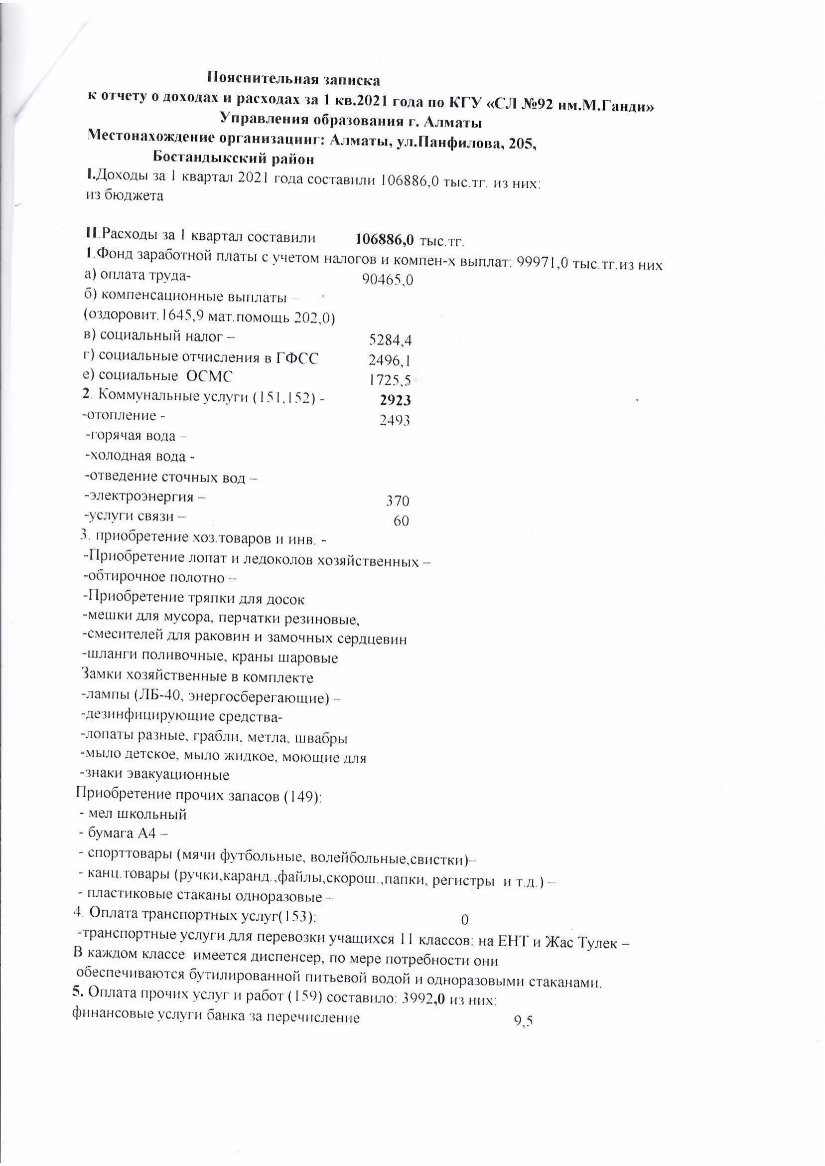 КГУ «Специализированный лицей №92 имени Махатма Ганди» Управления образования города Алматы