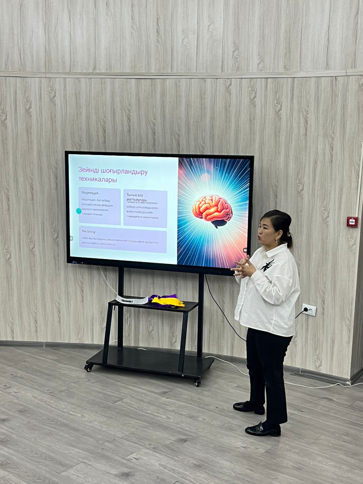 Тренинг тұрақты психологиялық жағдайды сақтауға, стресске төзімділікті арттыруға және өнімділікті арттыруға көмектесетін практикалық әдістер мен техникаларды ұсынылды. Тренинг барысында қатысушылар зейін шоғырландырудың практикалық жаттығулары орындалып, зейіннің түрлері, зейінді басқарудың тиімді әдістері, назарды аударудың алдын-алу техникалары (мысалы, медитация, тыныс алу жаттығулары, визуализация) түсіндірілді.