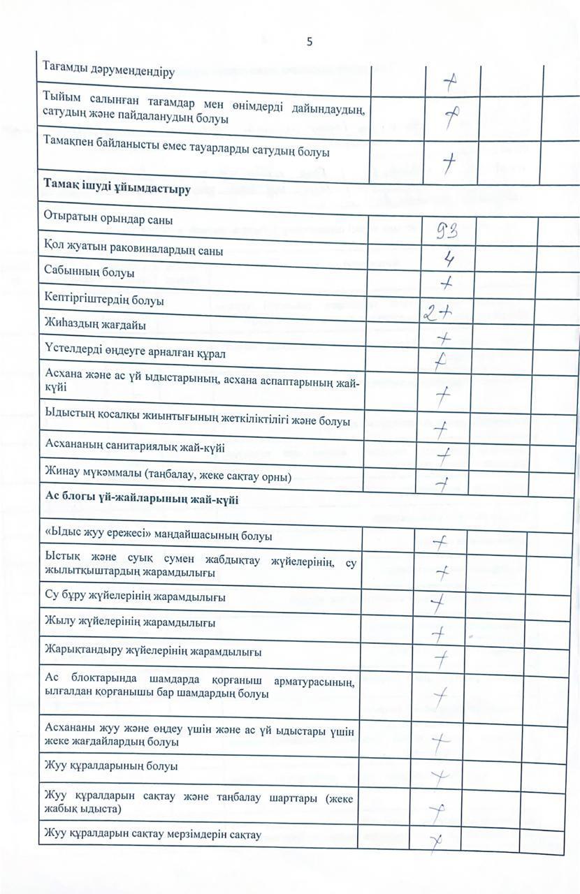 » Тамақтану сапасына мониторинг жүргісу актісі №1