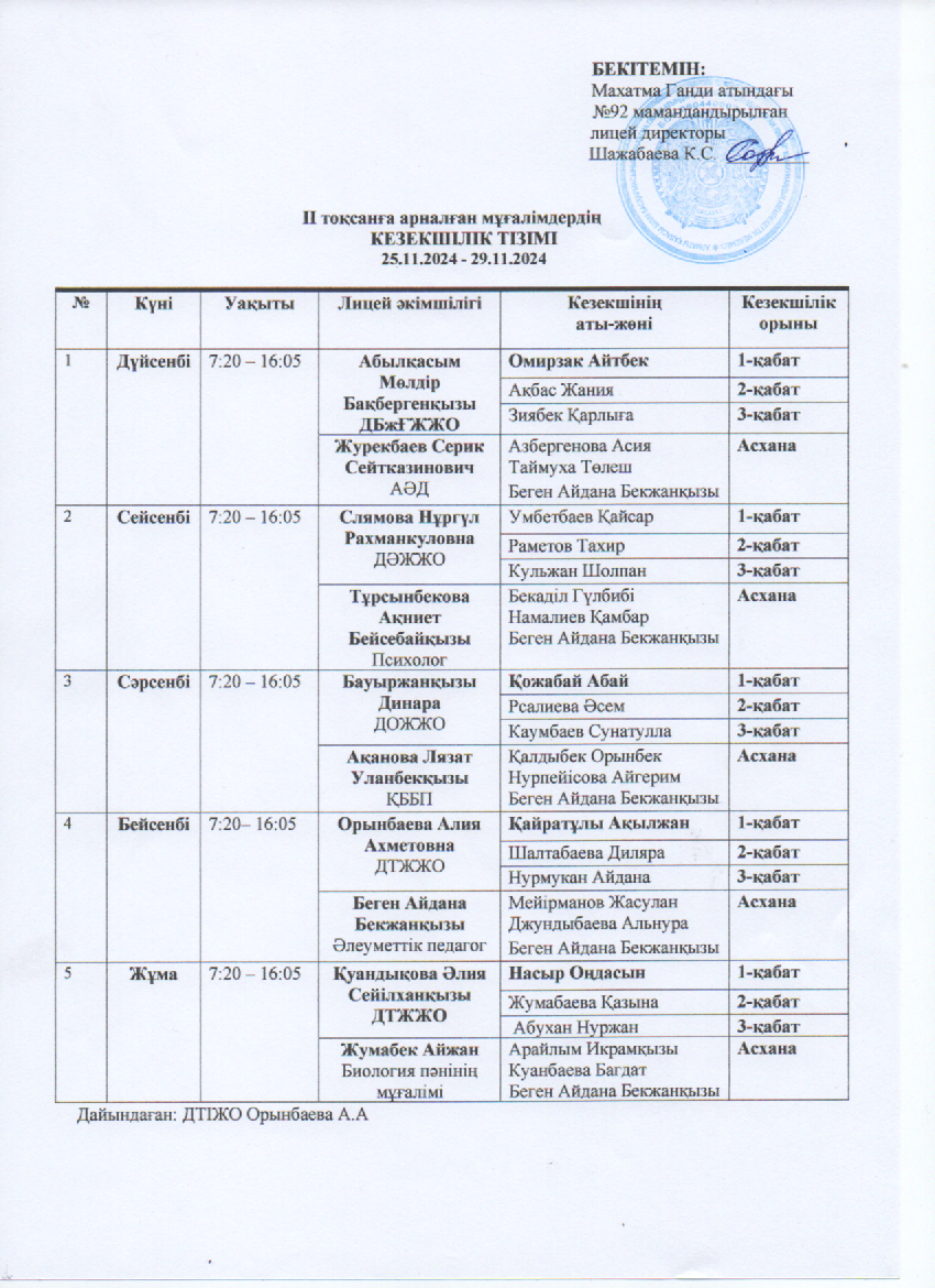 КГУ «Специализированный лицей №92 имени Махатма Ганди» Управления образования города Алматы