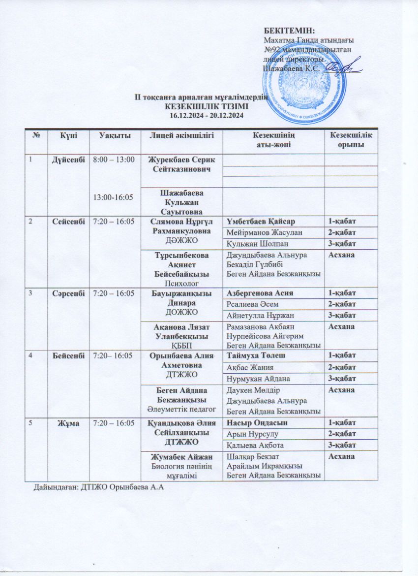 КГУ «Специализированный лицей №92 имени Махатма Ганди» Управления образования города Алматы