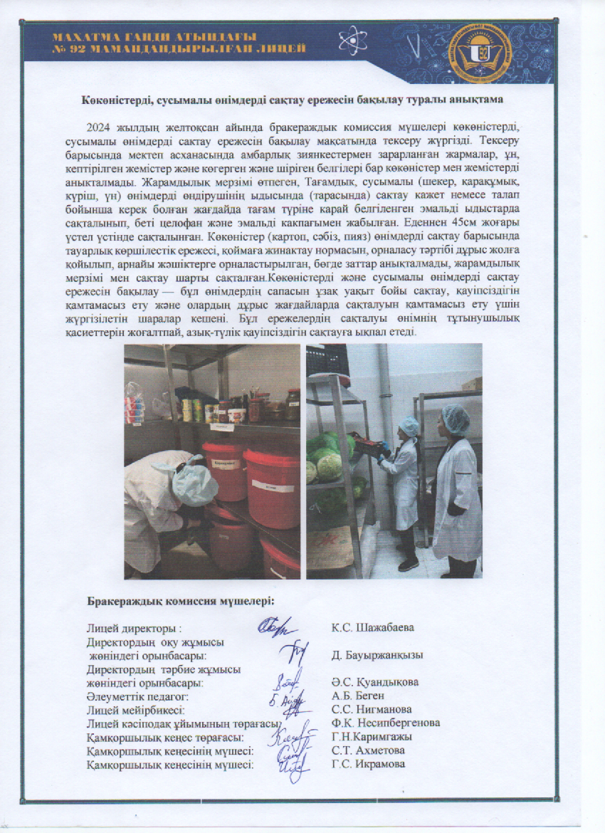 Көкөністерді, сусымалы өнімдерді сақтау ережесін бақылау туралы анықтама